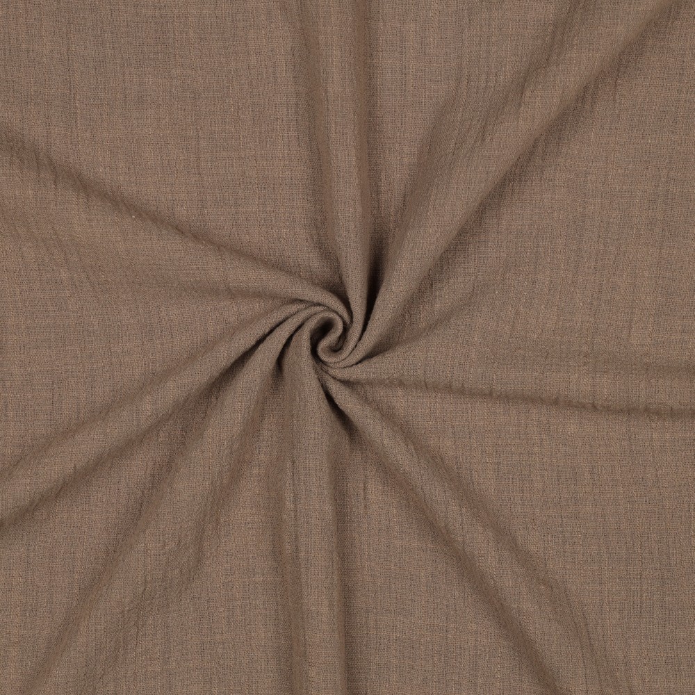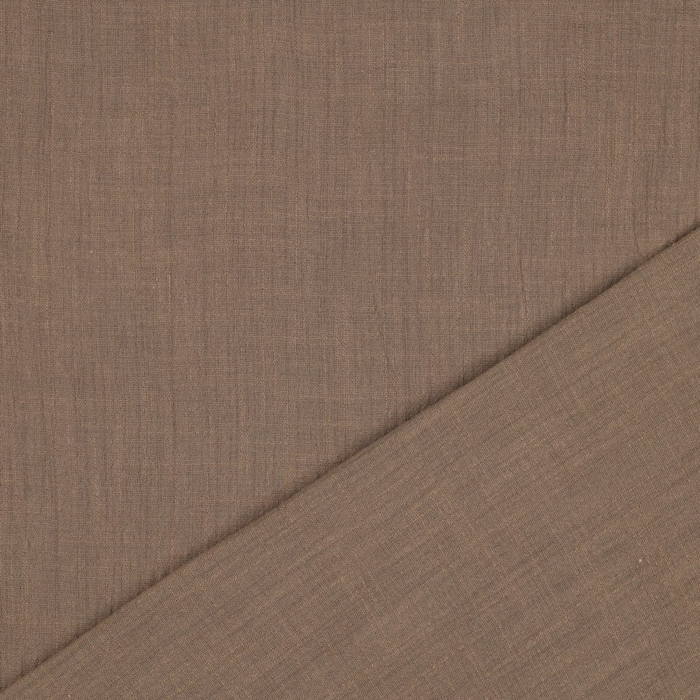 Tanto para blusas y camisas informales, pantalones de verano, ropa infantil, accesorios o proyectos de hogar como cojines, cortinas y mantelerías: este discreto marrón claro combina de maravilla con blanco, crema, negro, colores intensos o tonos pastel suaves. Una tela básica versátil que no debe faltar en ningún taller de costura y que aporta un toque natural y elegante a tus proyectos.