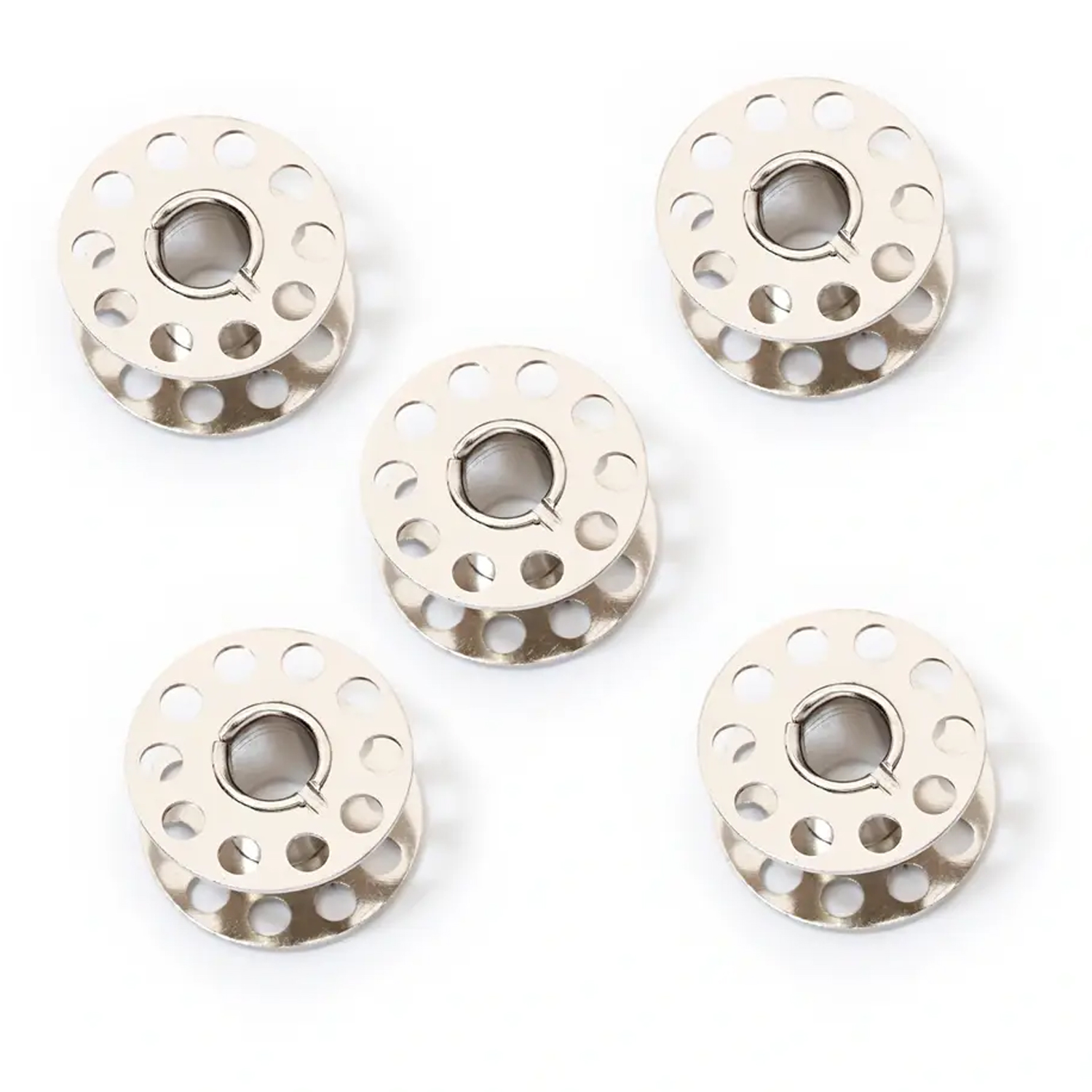 Las resistentes bobinas de metal son fáciles de enrollar y desenrollar, se asientan firmemente en la lanzadera y son especialmente duraderas: perfectas si coses con frecuencia o te gusta tener varios colores a mano. El juego contiene 5 bobinas para que puedas preparar tus colores de hilo más importantes con claridad y cambiarlos rápidamente en cualquier momento.