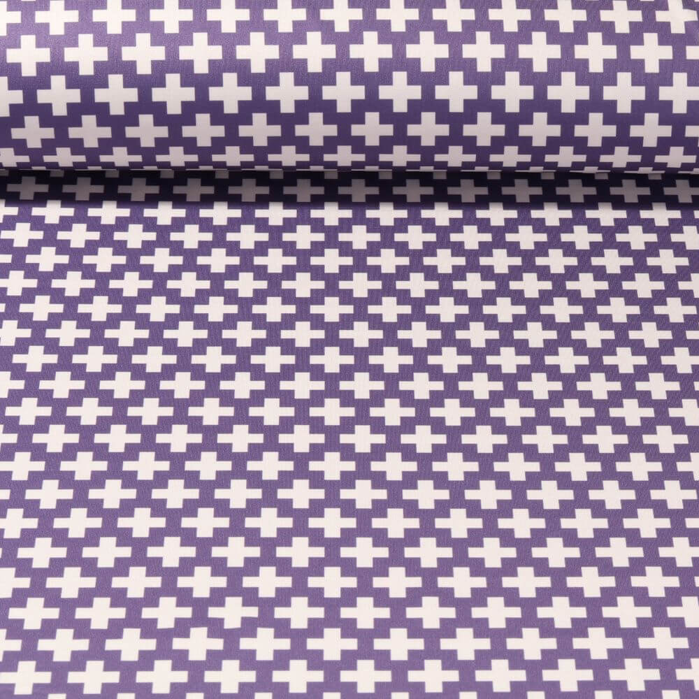 El diseño "Criss Cross Lila" presenta un patrón de líneas dinámico y gráfico que cubre el tejido como una fina red. Delicadas líneas de color claro se entrecruzan rítmicamente sobre un intenso tono morado y crean un aspecto moderno y deportivo con un toque femenino. El juego de líneas claras y colores intensos es potente y elegante a la vez: perfecto para leggings llamativos, sujetadores deportivos, tops, bodys o ropa de baño y playa.