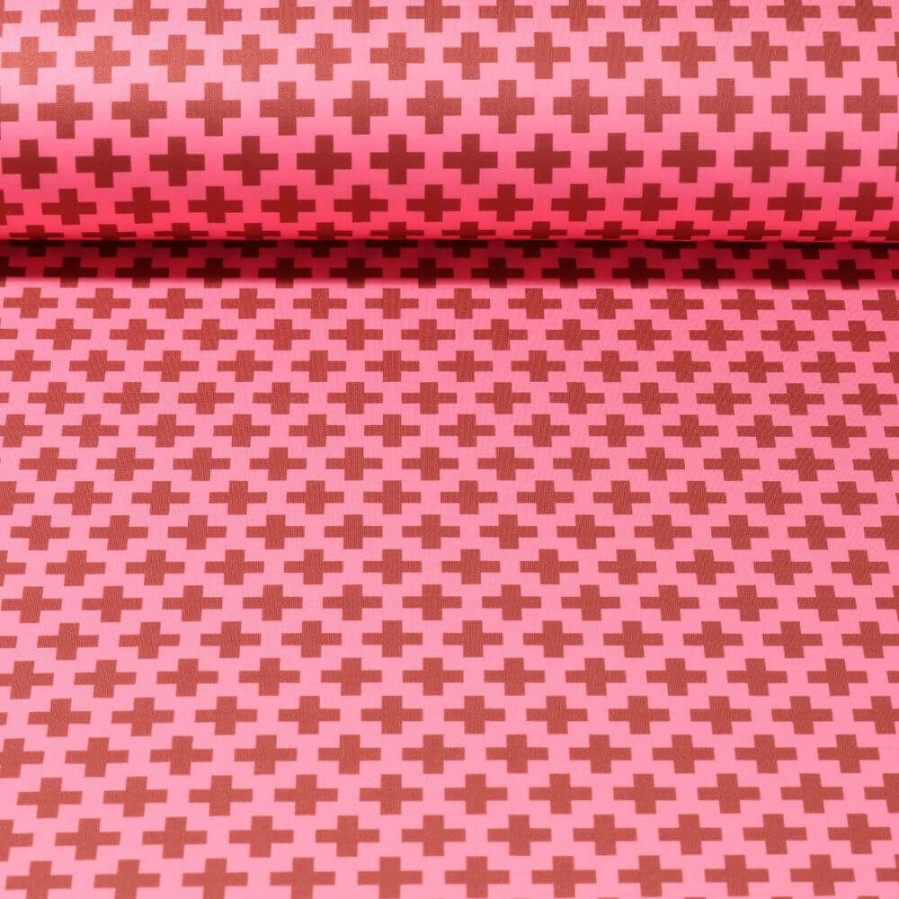El diseño presenta un dinámico patrón entrecruzado de finas líneas que se extienden por el tejido como una rejilla de filigrana. Tonos suaves de rosa se combinan con acentos claros y oscuros: un look moderno y femenino que resulta ideal para yoga, entrenamientos o para llevar a diario.