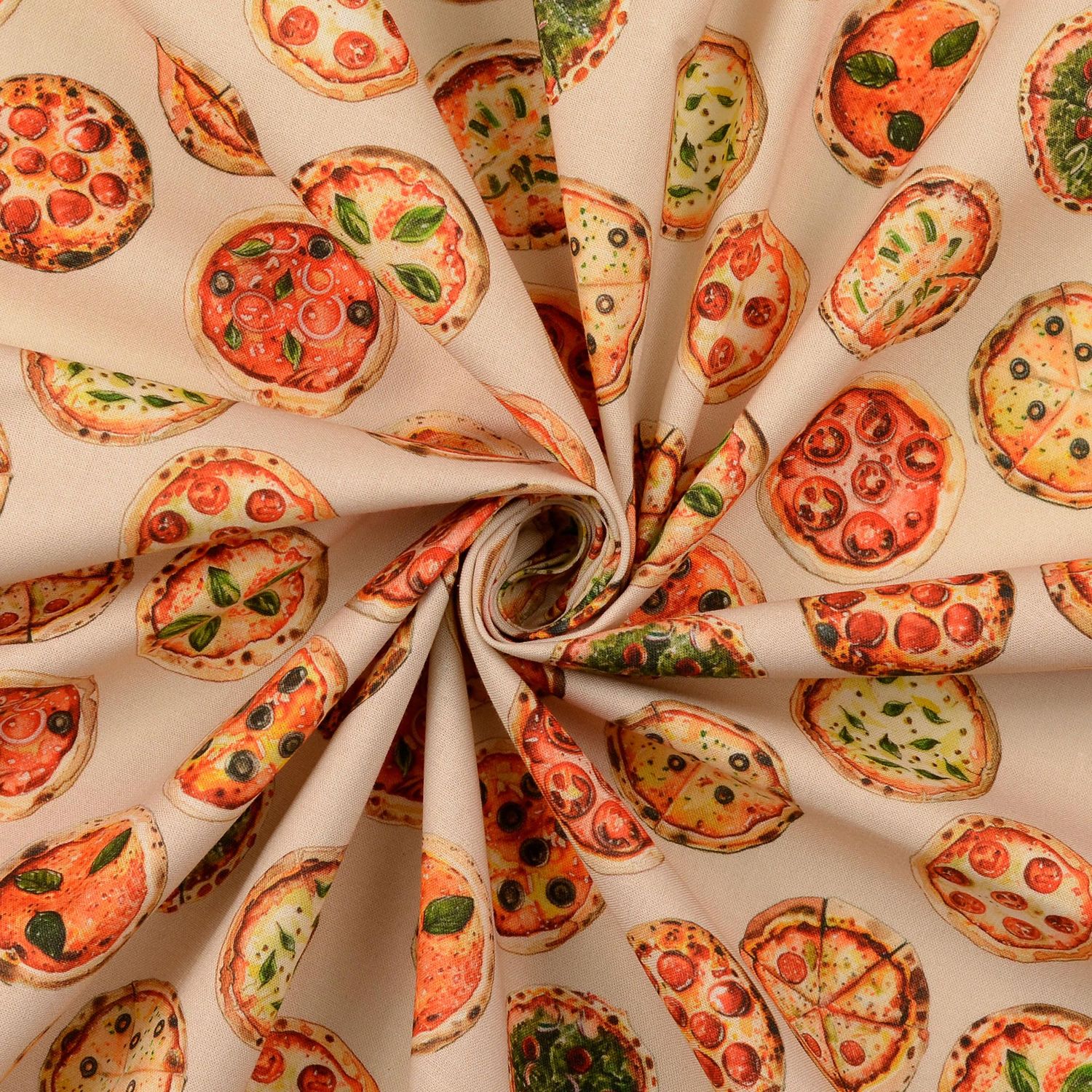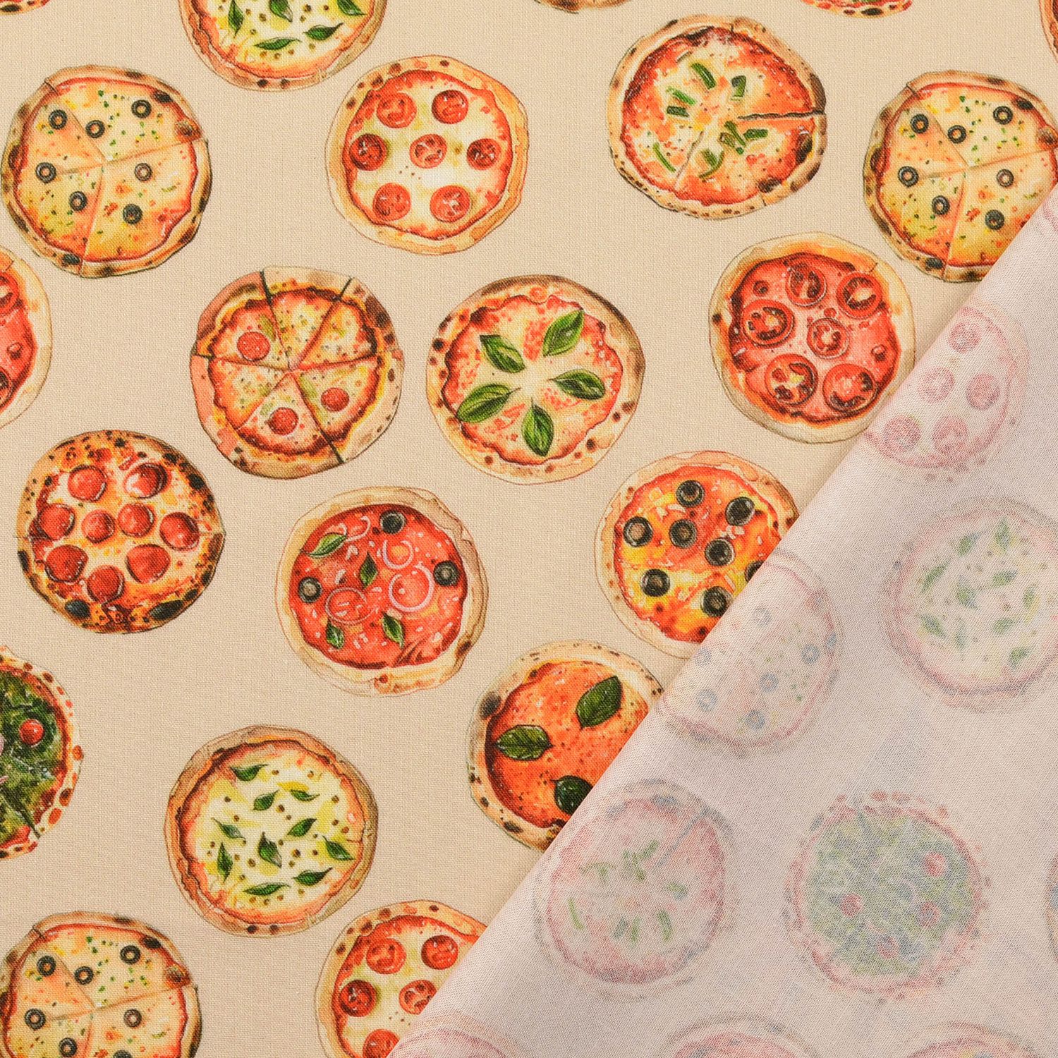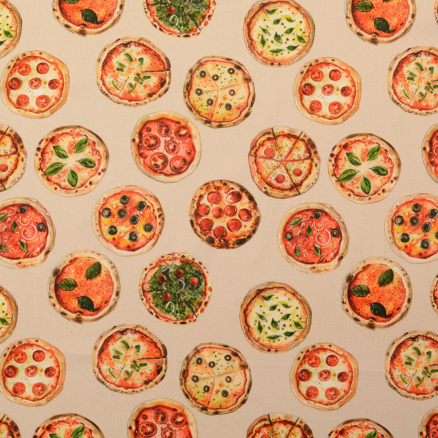 Cretona de algodón - Estampado digital Pizza Beige