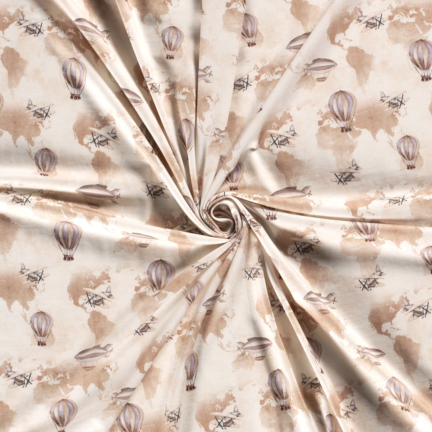 Con su tacto liso y calidad fácil de cuidar, esta tela es perfecta para quienes desean combinar diseños alegres, alta comodidad y cuidado sencillo. Un jersey encantador para pequeños pilotos, soñadores y todos los que aman el cielo.