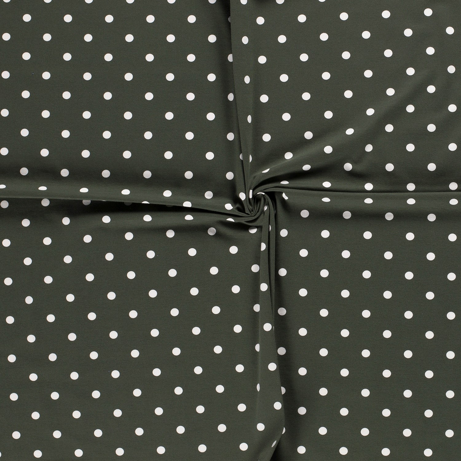 Gracias a su superficie lisa y agradable al tacto, se trabaja muy bien y es apto para principiantes. El tono base verde oscuro combinado con los finos puntos blancos es adecuado para cualquier estación y se puede combinar de muchas formas, desde un estilo casual hasta elegante.
