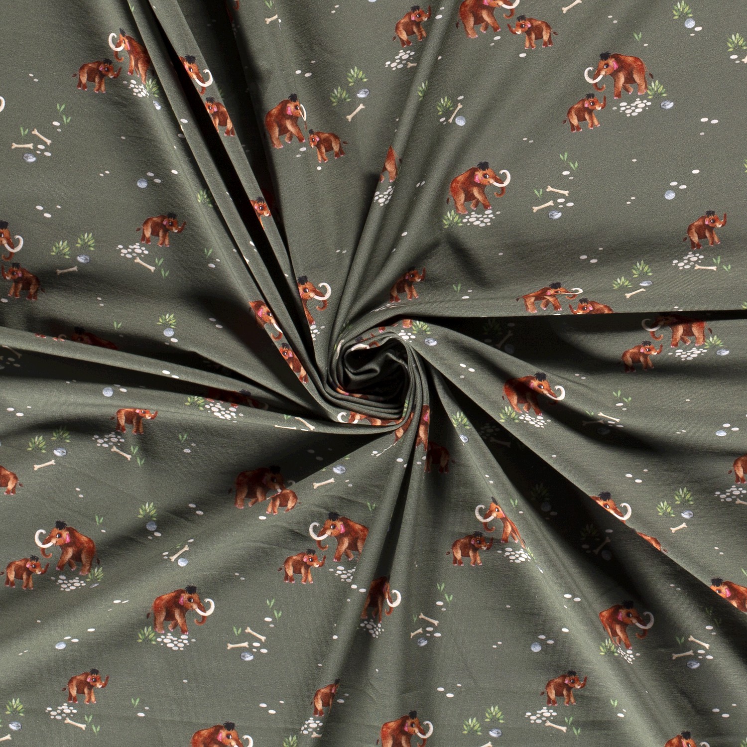 Este jersey cuidadosamente diseñado muestra toda una familia de mamuts sobre un suave fondo kaki, perfecto para pequeños exploradores y para quienes aman los motivos naturales y juguetones. Entre mamuts peludos, adorables bebés mamut y detalles finos de huesos, se encuentran hierbas, hojas y pequeñas piedras que crean un encantador paisaje prehistórico.