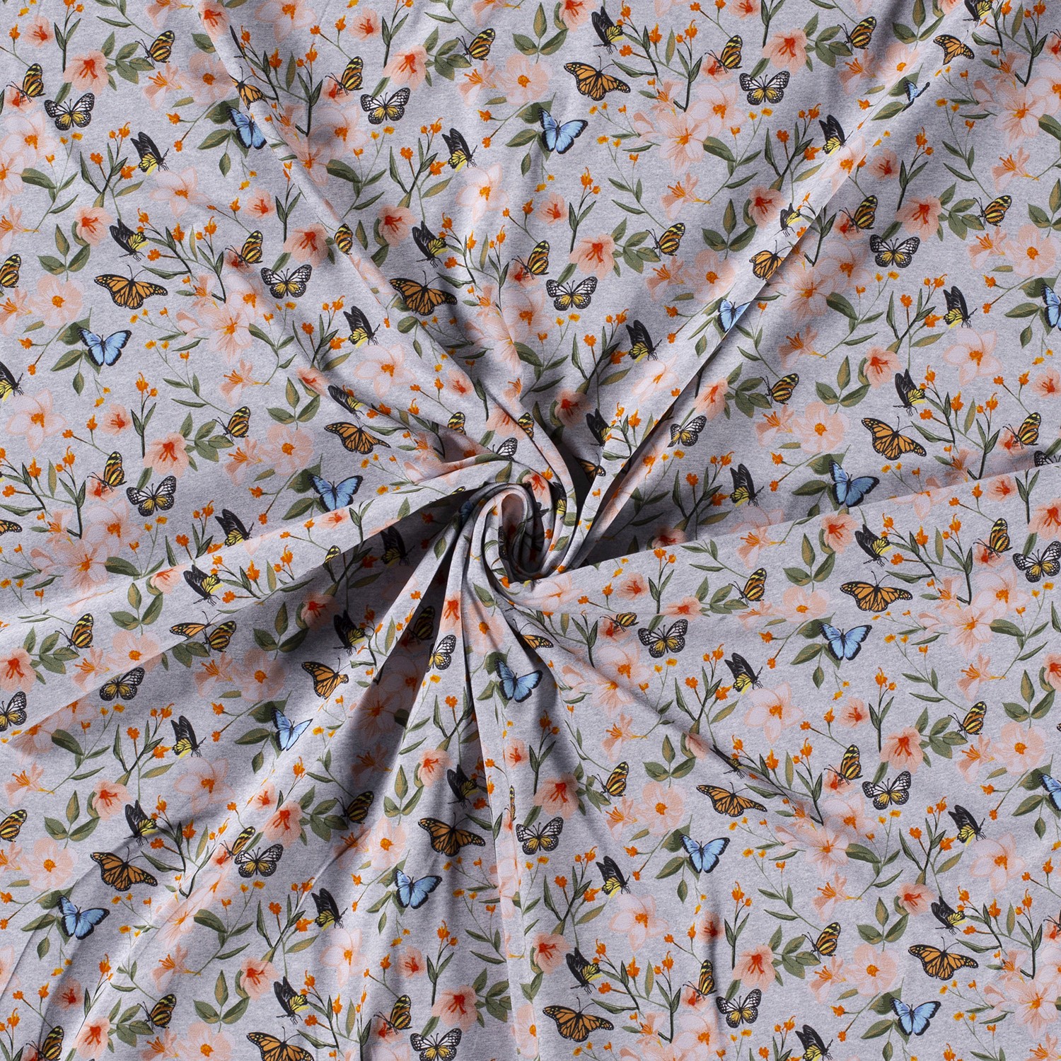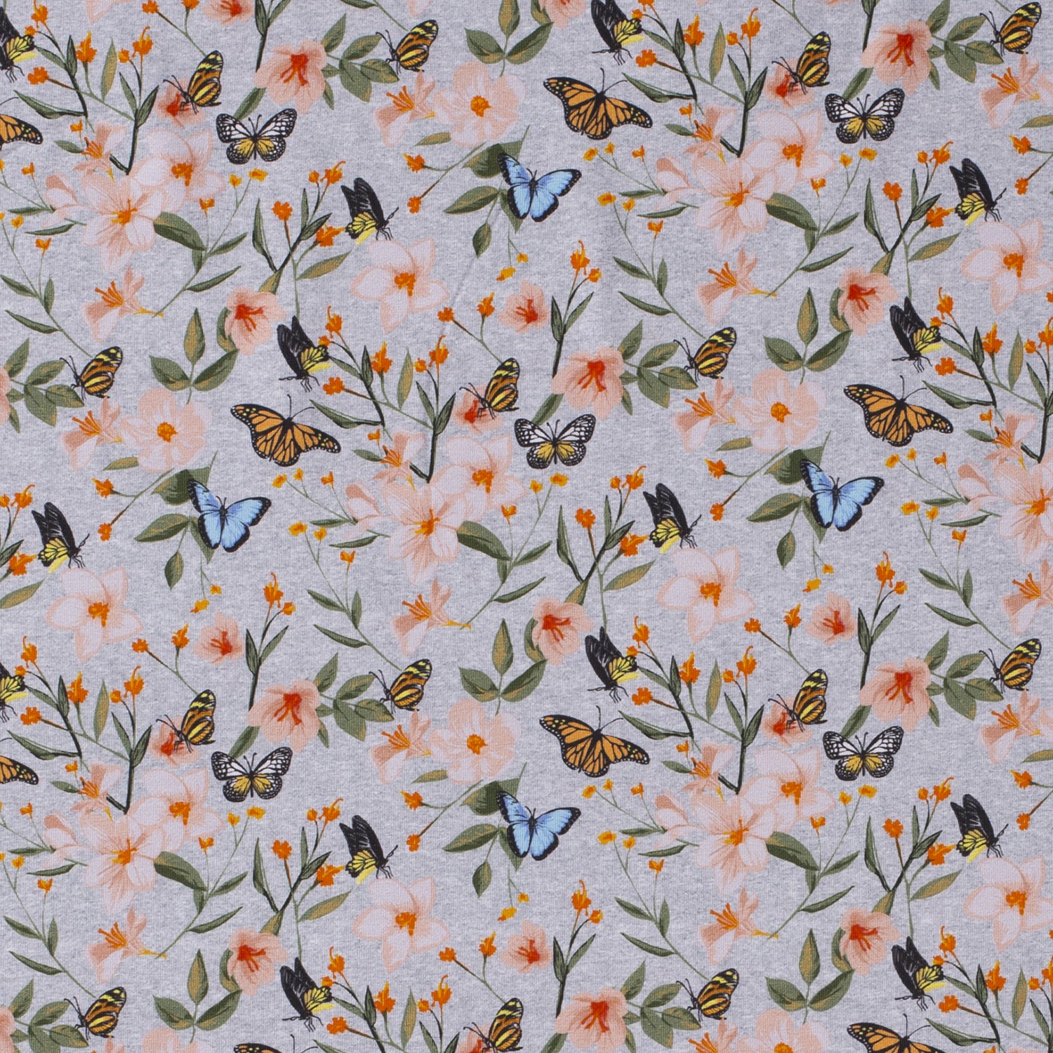 Jersey Mariposas entre flores Gris claro jaspeado digital