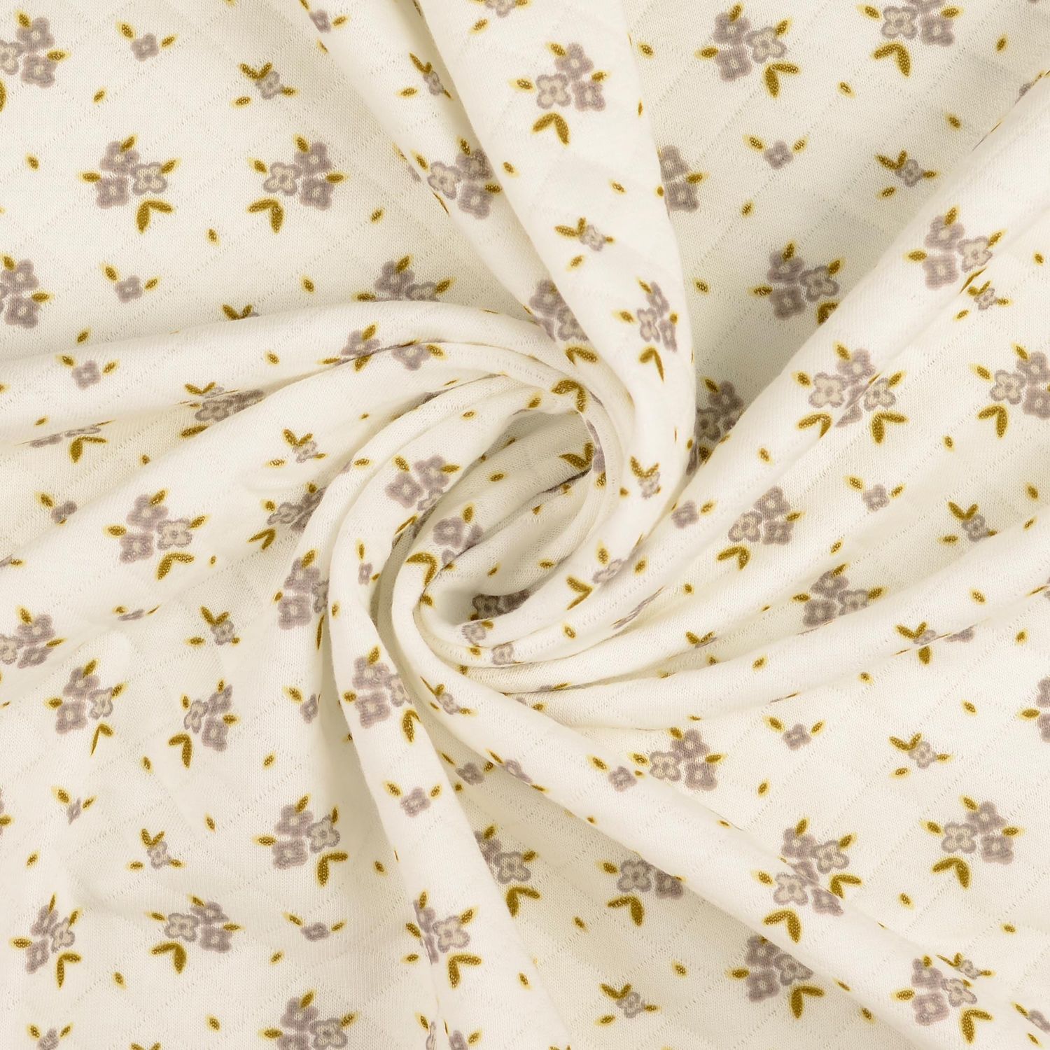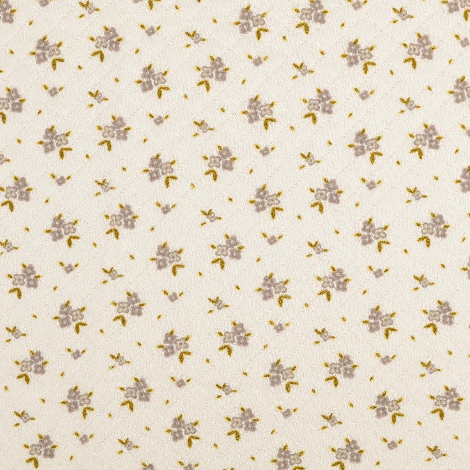 Jersey Muselina Acolchada - Flores Blanco Gris