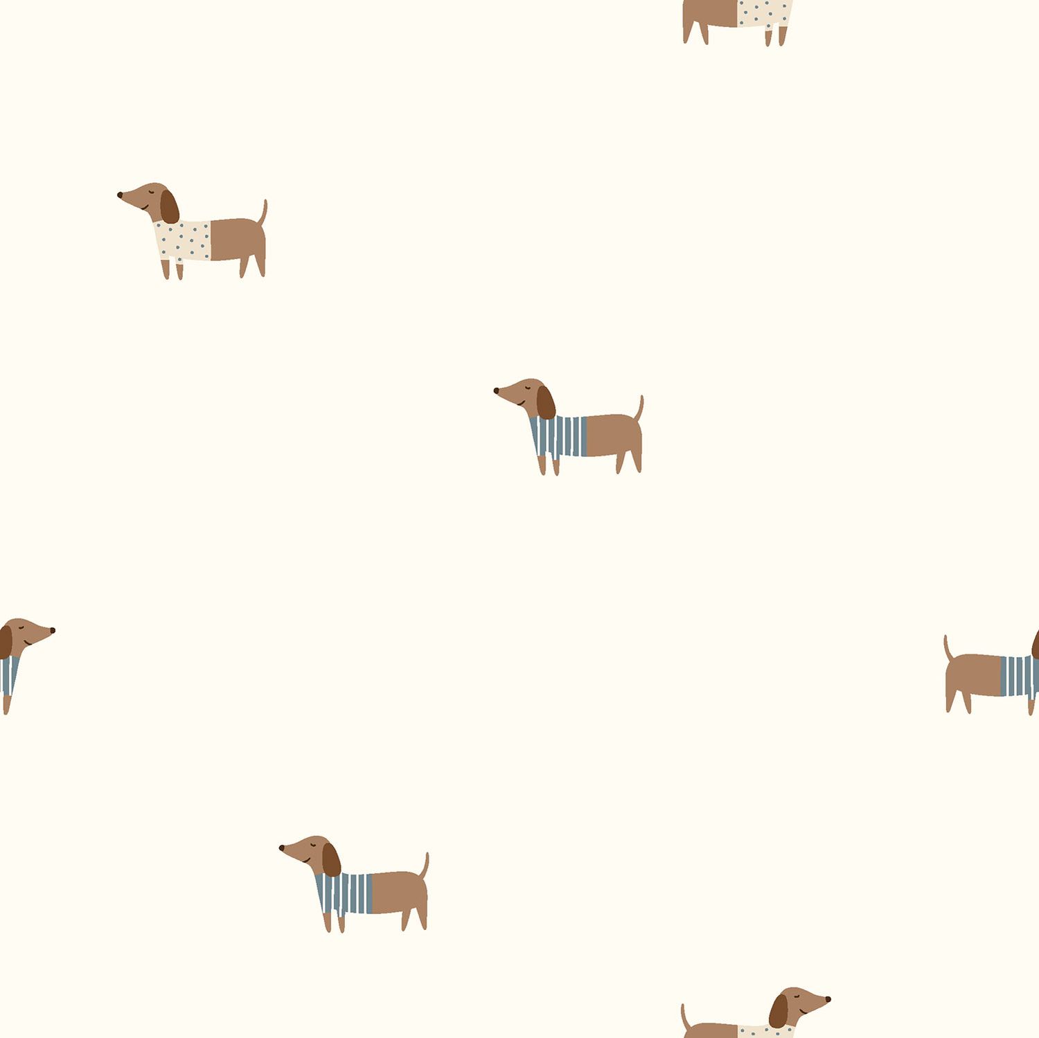 Una tela para enamorarse: sobre un suave fondo offwhite se despliegan alegres pequeños teckels que, con su encantador aspecto, transmiten buen humor al instante. Los adorables perros están ilustrados con cariño y en tonos marrones cálidos, acentuados con detalles discretos que hacen que el diseño cobre vida sin ser demasiado juguetón.