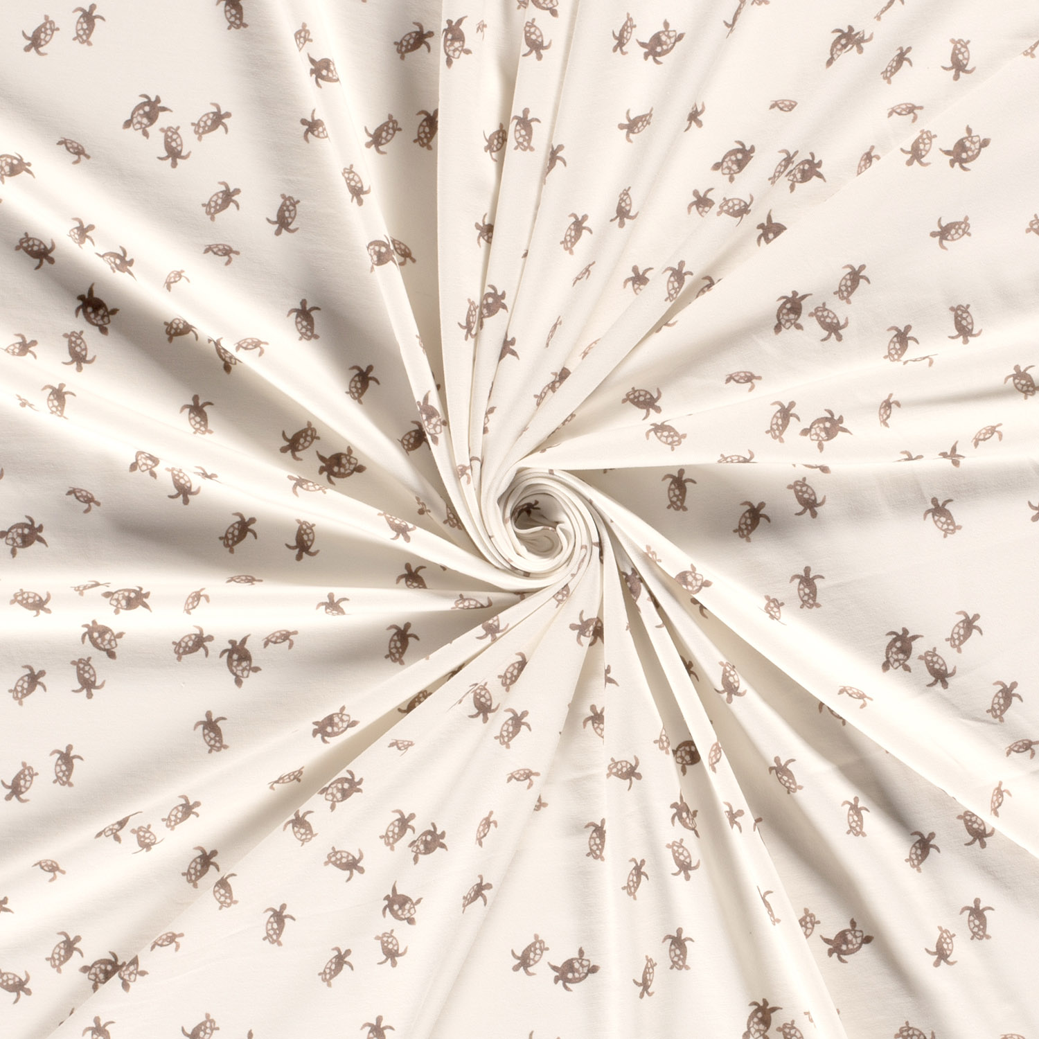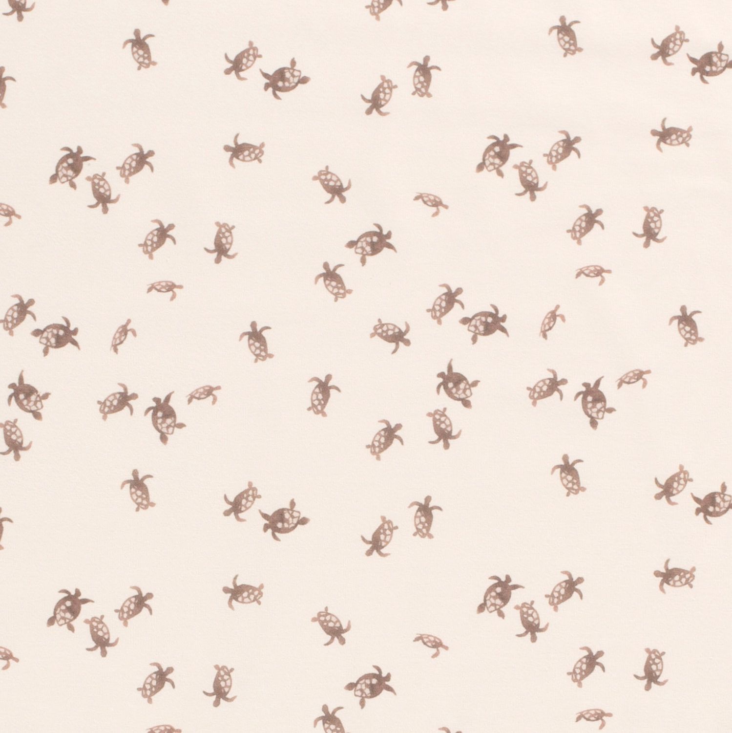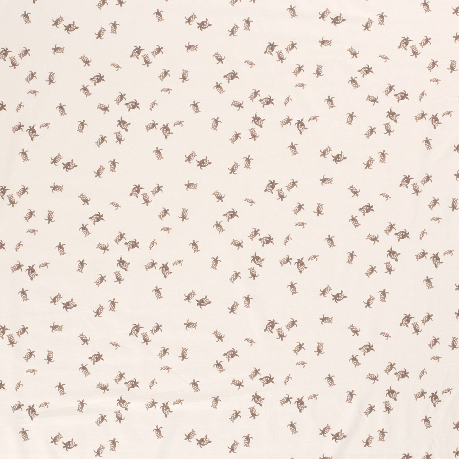Un delicado tono crema se encuentra con adorables tortugas – este jersey encanta con un diseño amoroso y detallado. Sobre el fondo claro se distribuyen pequeñas tortugas finamente dibujadas en tonos cálidos y naturales: suaves matices marrones y beige, verde delicado y contornos discretos que hacen el motivo vivo pero agradablemente tranquilo.