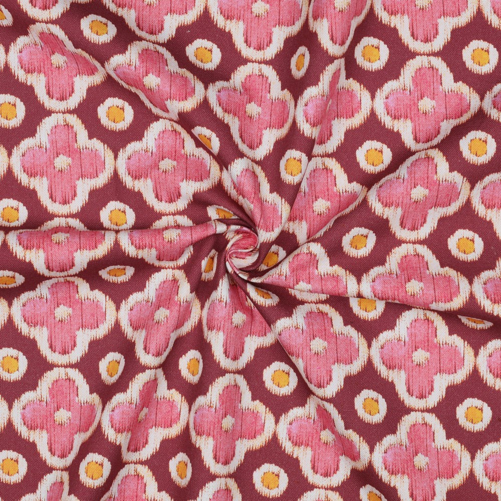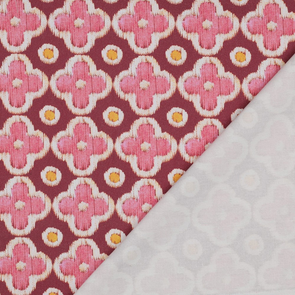 Lienzo de algodón - estampado digital flores lunares burdeos