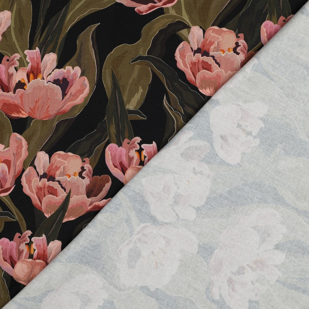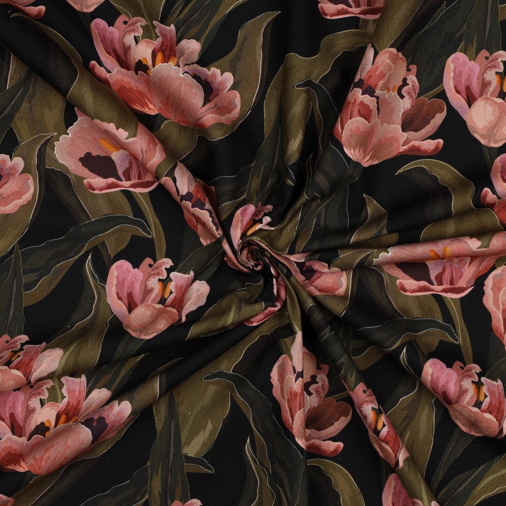 Lona de algodón - Estampado digital Tulipanes Negro