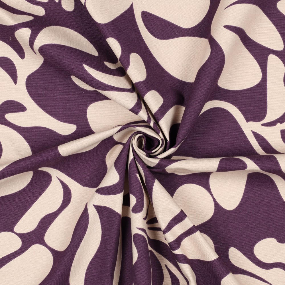 Lona de algodón - Hojas vintage en color berenjena