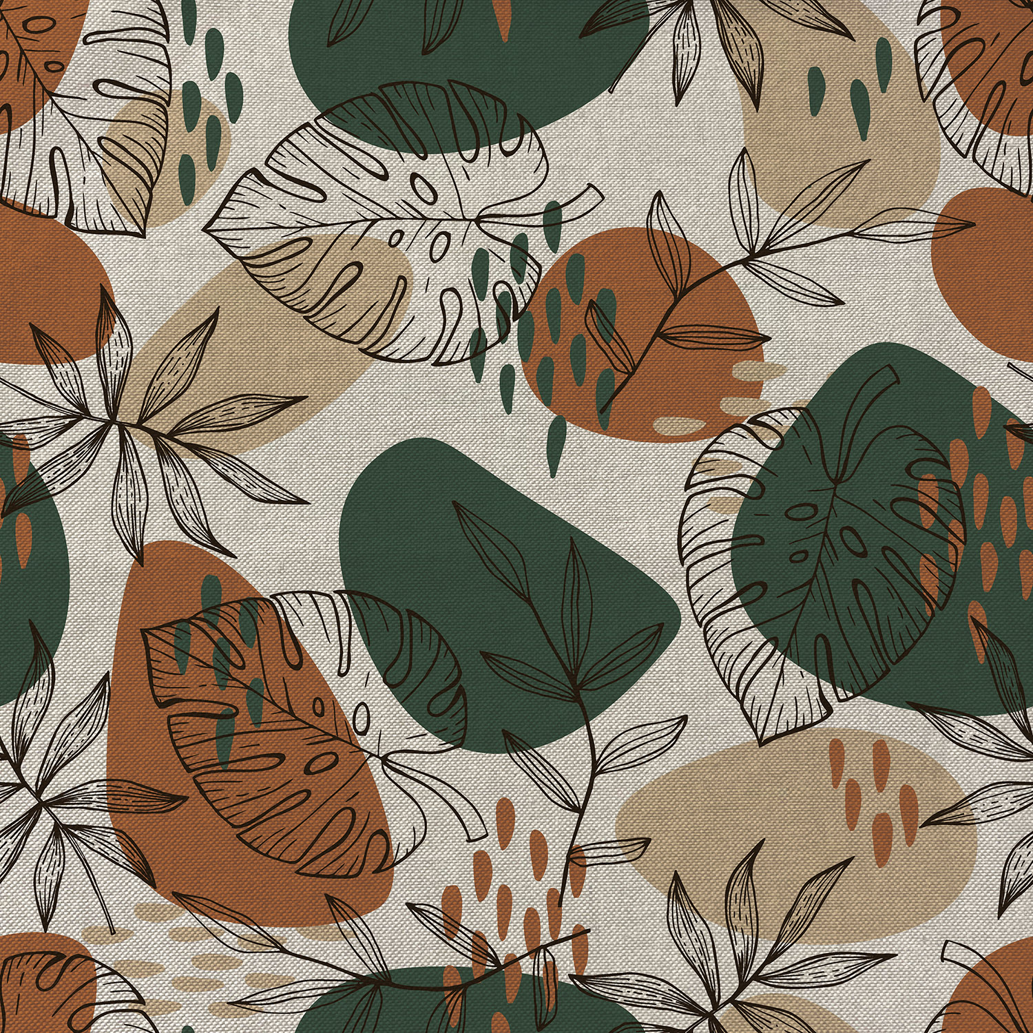 Lona sostenible - Hojas pintadas en look lino beige