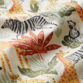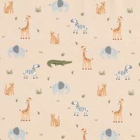 GOTS Tela de algodón Cretona Animales de safari – beige13,99 € / m (9,99 € / m²)