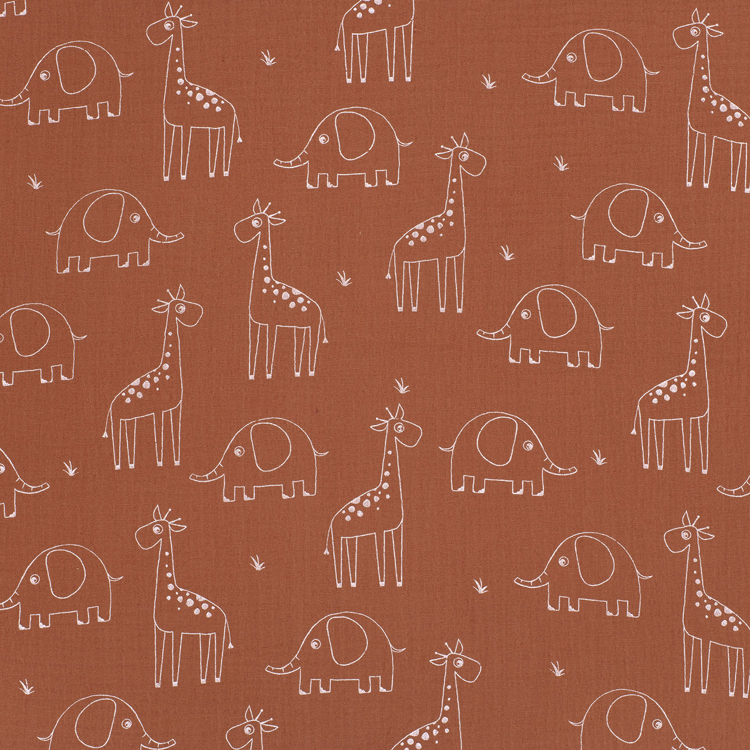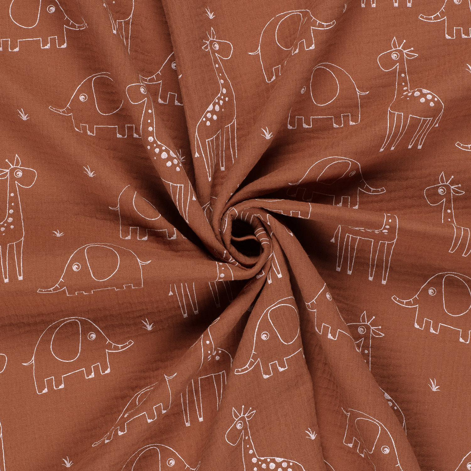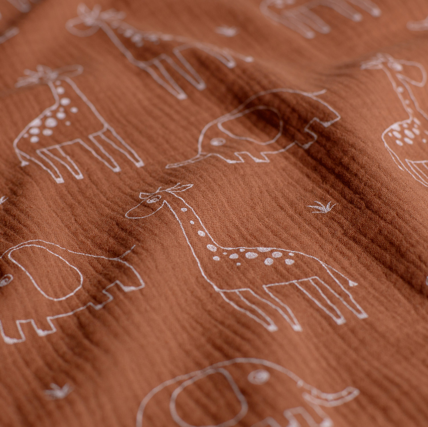 Muselina de algodón - Elefante y jirafa sobre madera de rosa