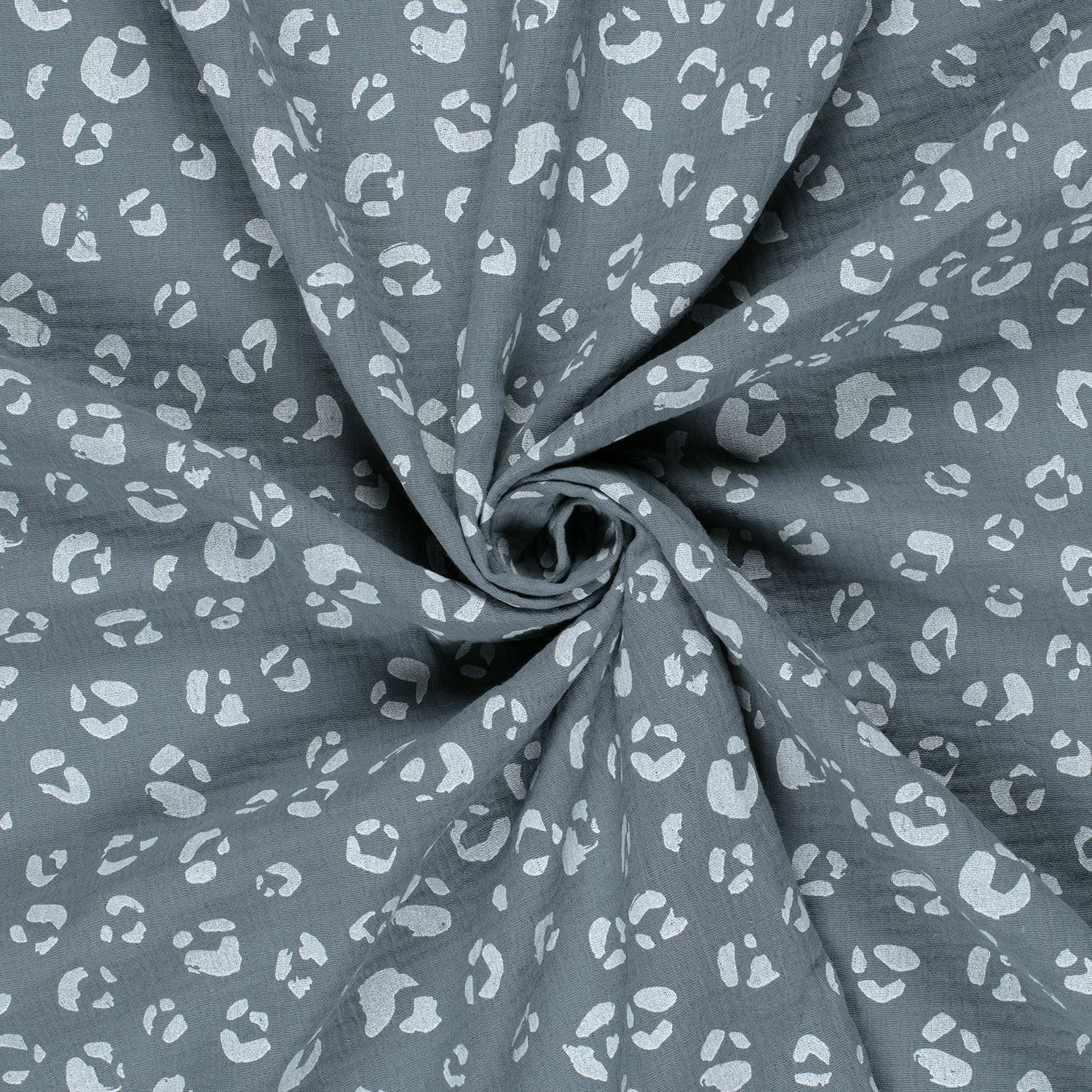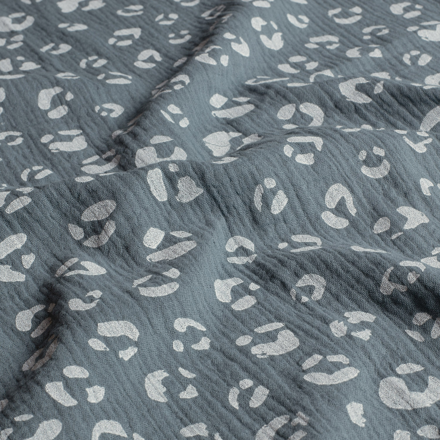 Un toque de wildness en elegante azul acero: Esta muselina con estampado moderno de leopardo combina diseño de tendencia con ligereza desenfadada. La tela fina, ligeramente arrugada, le da al tejido su típica estructura suave y caída – perfecta para pañuelos cómodos, blusas aireadas, vestidos de verano, mantas para bebés o mantas para abrazar.