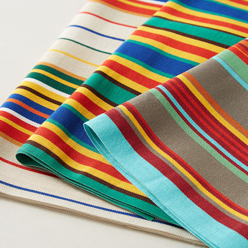 - Importante: Esta tela únicamente se puede trabajar y cortar de manera transversal al borde de la tela, es decir, el ancho es fijo. Si la tela se corta paralela al borde de la tela, ¡las fibras se mueven! Los bordes de la tela son firmes, pero los bordes de corte deben sobrehilarse bien.