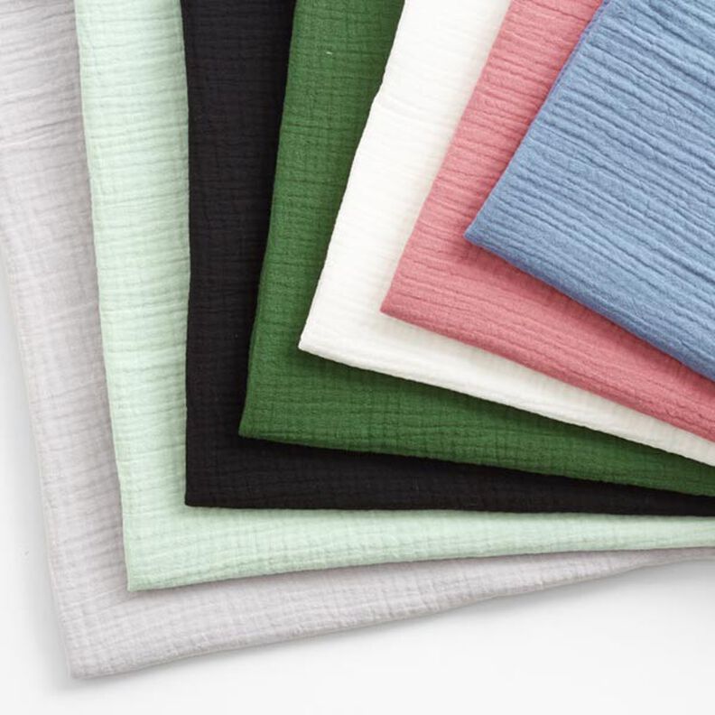 - MUSELINA: Anteriormente conocido como pañal, este tejido súper suave doble arruga, también denominado muselina / muslina o doble gasa, está hoy muy de moda entre grandes y pequeños. ¡A partir de la muselina puedes confeccionar no sólo paños, sino también hermosos vestidos, túnicas, ropa de niños y mucho más!