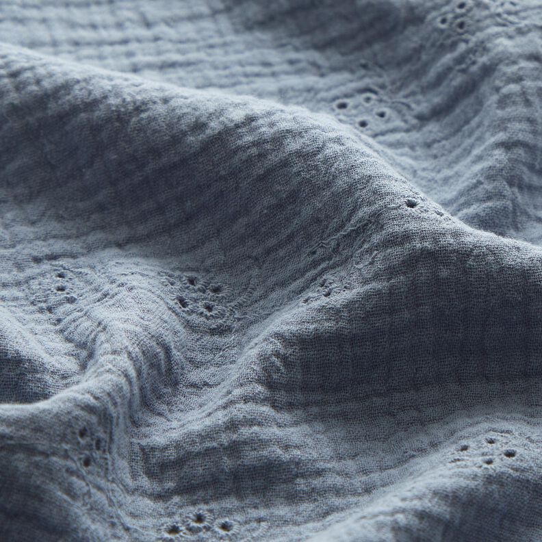 Muselina/doble arruga Bordado inglés Flores entrelazadas – azul gris