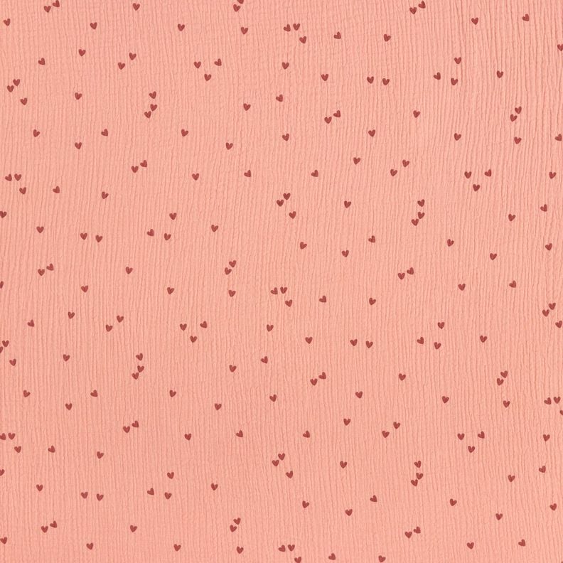 Muselina/doble arruga Corazones dispersos – rosa viejo oscuro/borgoña