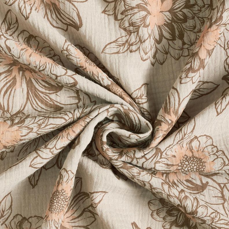 Muselina/doble arruga Flores de verano – marrón claro/marrón medio