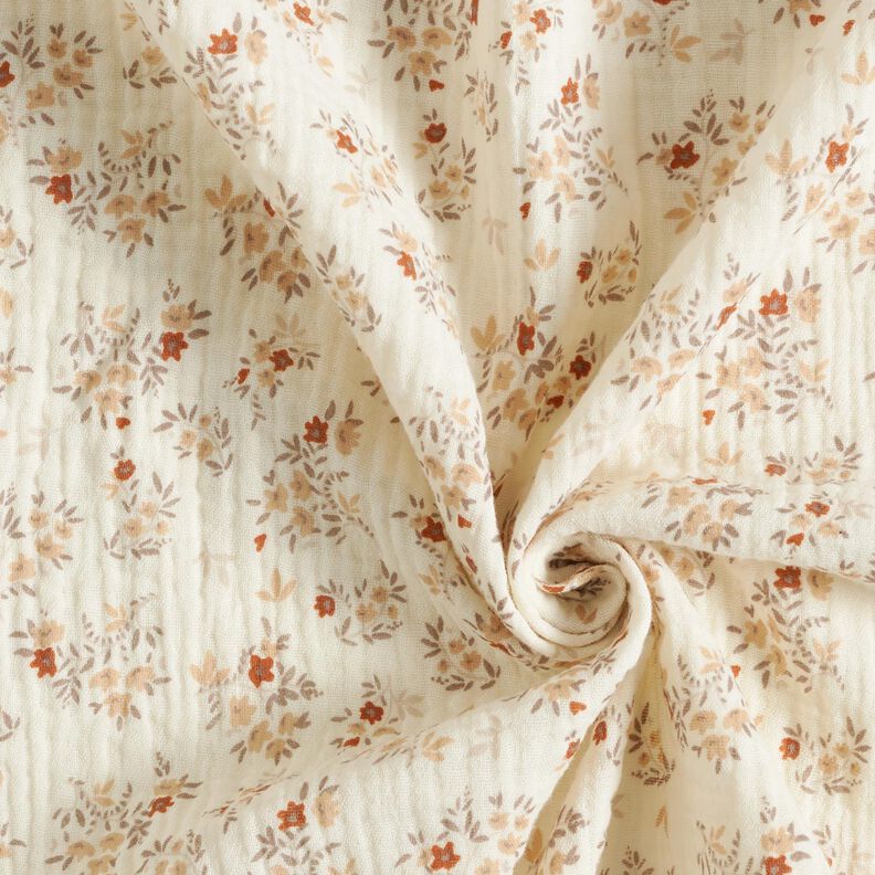 Muselina/doble arruga Flores pequeñas – blanco lana