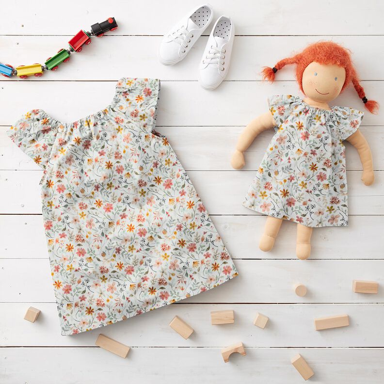 Muselina/doble arruga Prado de flores de colores Impresión digital | Poppy Fabrics – marfil/naranja