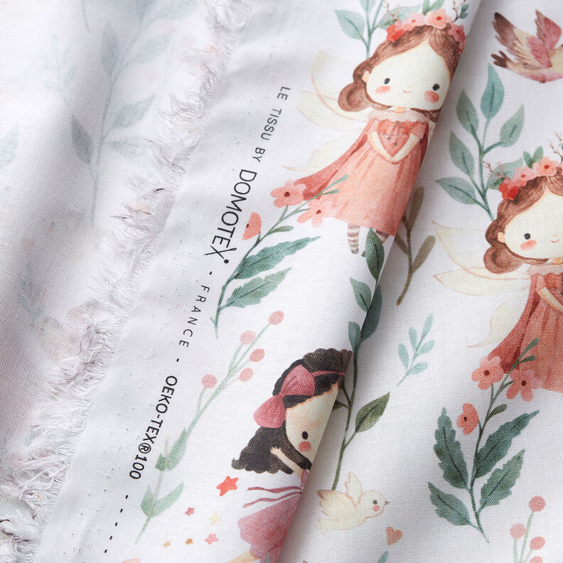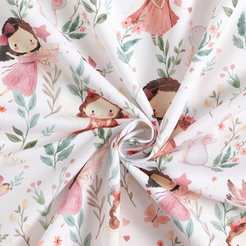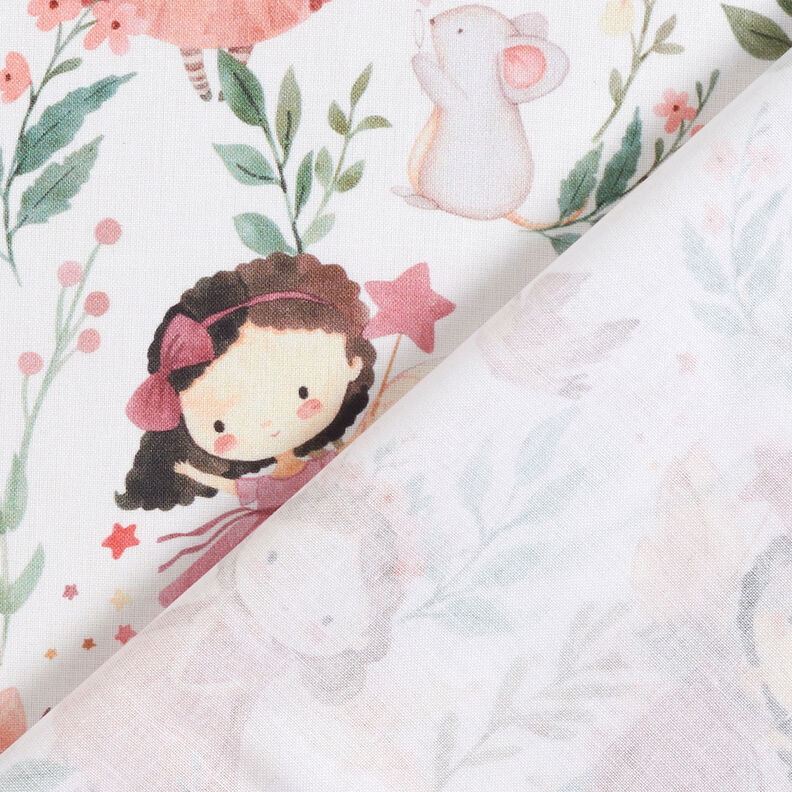 Popelina de algodón Hadas de las flores Impresión digital – marfil
