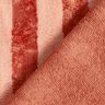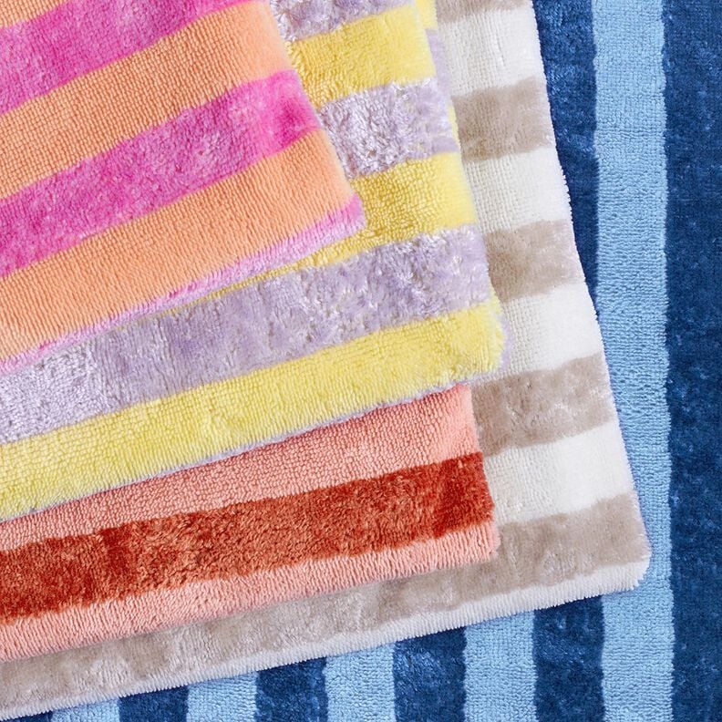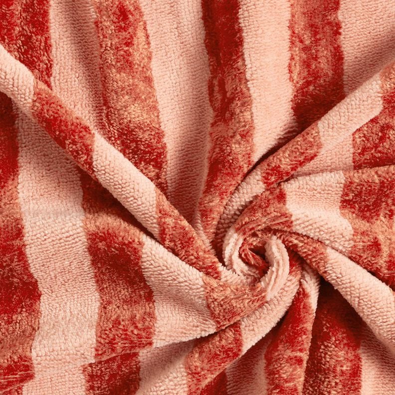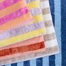 Esta estupenda tela de rizo con su patrón de colores brillantes le garantiza un buen estado de ánimo y es un gran compañero para su día en la playa. La tela de rizo es particularmente absorbente y suave debido a su estructura de bucle tan característica. Así que es ideal para toallas de mano, toallas de baño y albornoces.