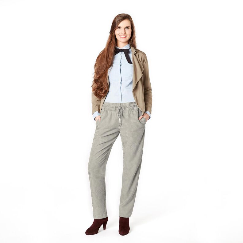 - TU PROYECTO DE COSTURA: Esta maravillosa tela de pantalón hecha de una mezcla de lana se puede usar no solo para coser pantalones, como su nombre indica, sino también para blazers, faldas y vestidos. Lo mejor para trabajar esta tela es una aguja de grosor 70 – 80.