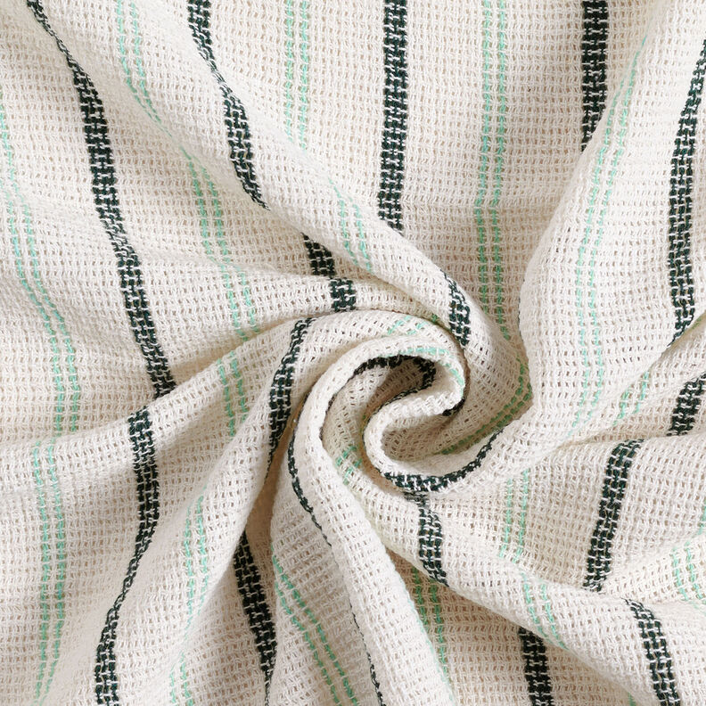 Tela de algodón con estructura de rejilla y rayas longitudinales – blanco/menta
