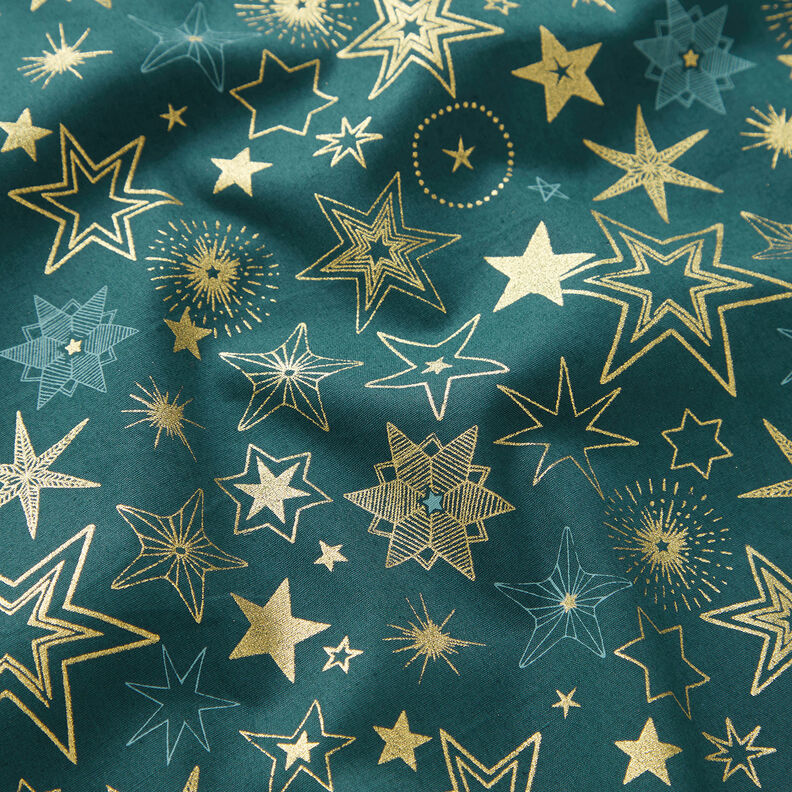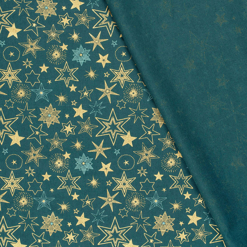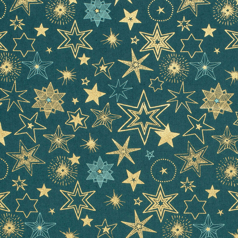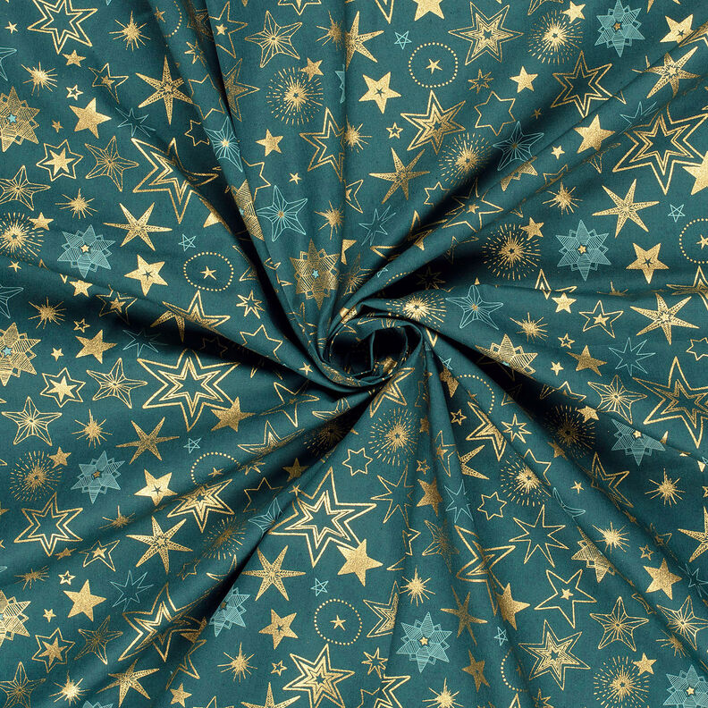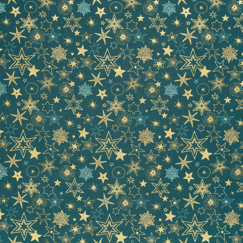 Tela de algodón Popelina Estrellas grandes – abeto azul/dorado
