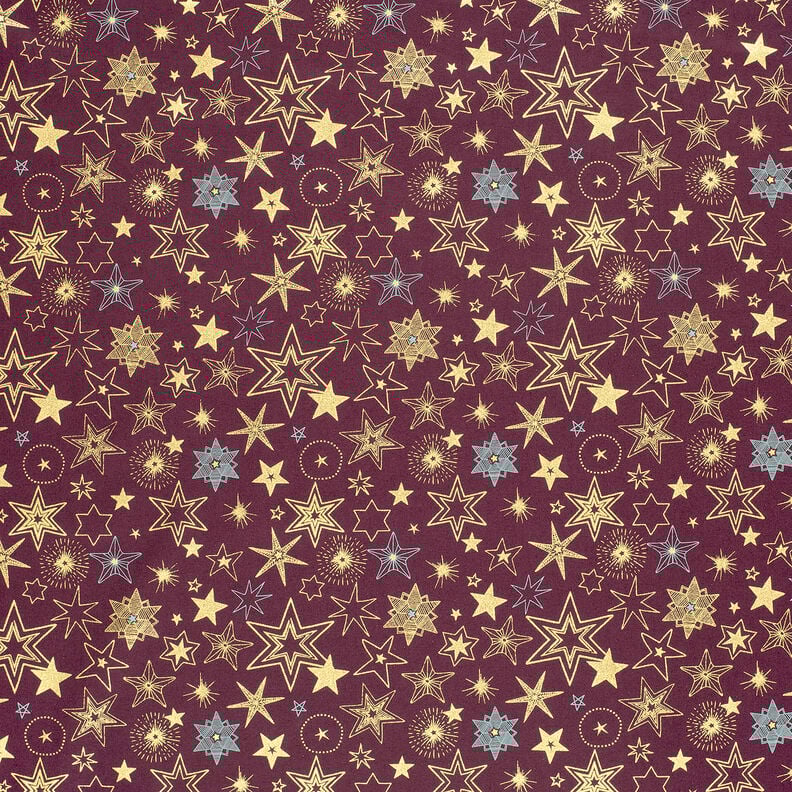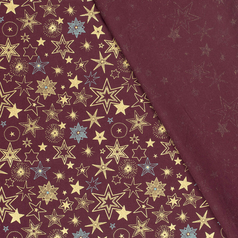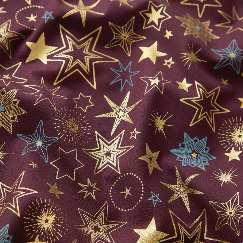 Tela de algodón Popelina Estrellas grandes – merlot/dorado