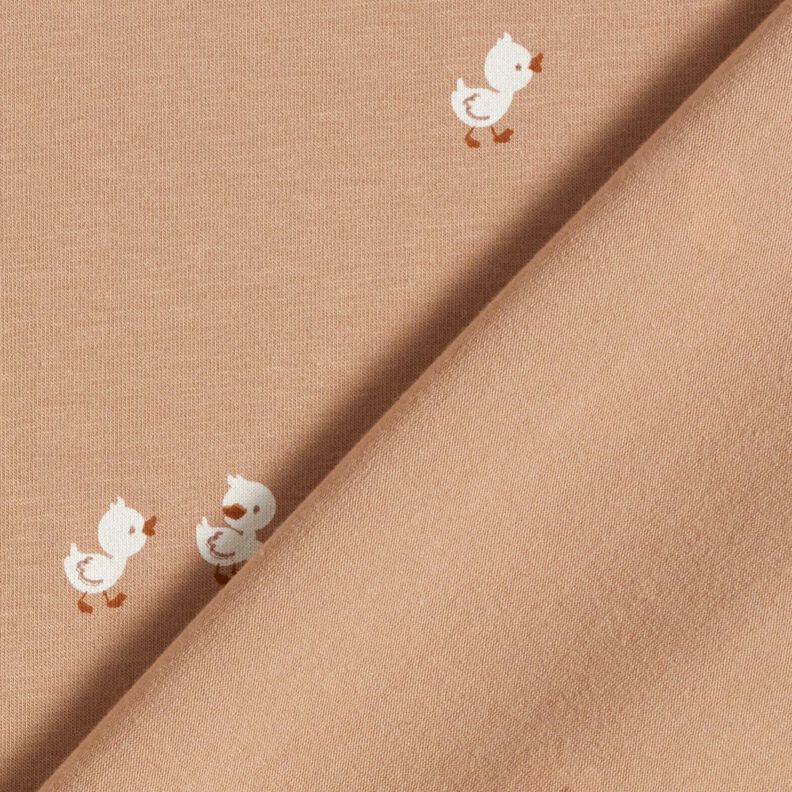 Esta maravillosa tela de jersey de algodón con un espectacular estampado infantil se caracteriza por tener un tacto agradable y liso. Es un compañero muy cómodo, ya que es bielástico y agradable a la piel así los pequeñines se sienten como pez en el agua.