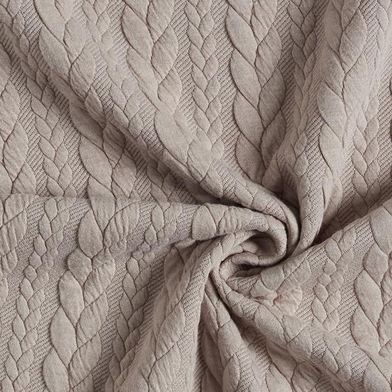 Tela de jersey jacquard Cloqué Punto trenzado – beige