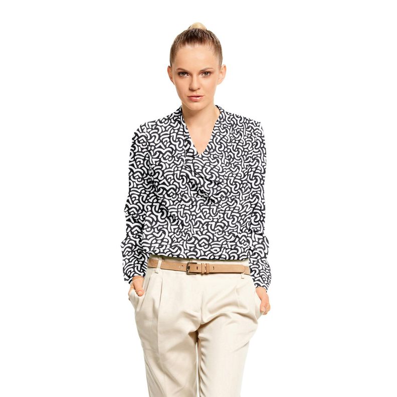 Tela de viscosa Líneas onduladas abstractas – negro/blanco
