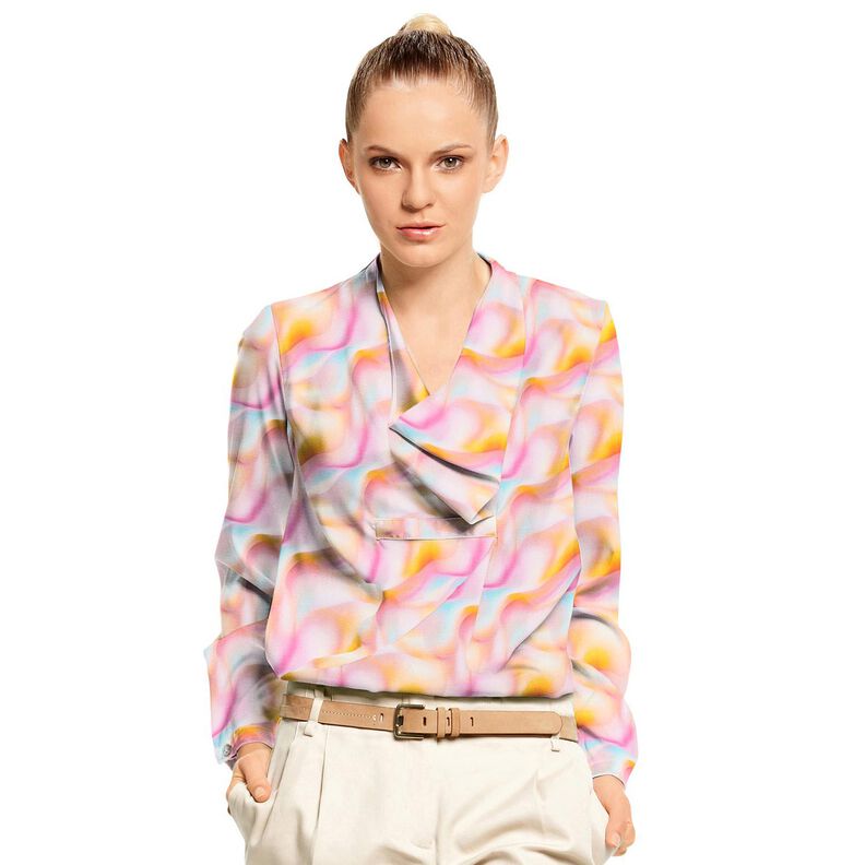 Tela de viscosa Patrón de ondas veraniego – albaricoque/azul hielo