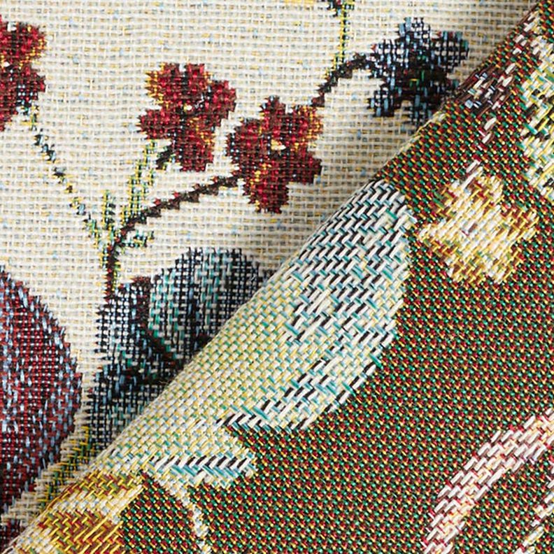 Esta maravillosa tela de tipo tapiz se caracteriza por un patrón de tipo jacquard muy atractivo. Gracias a su tipo de tejido esta tela es especialmente resistente y dimensionalmente estable y cuenta con una caída bastante rígida.