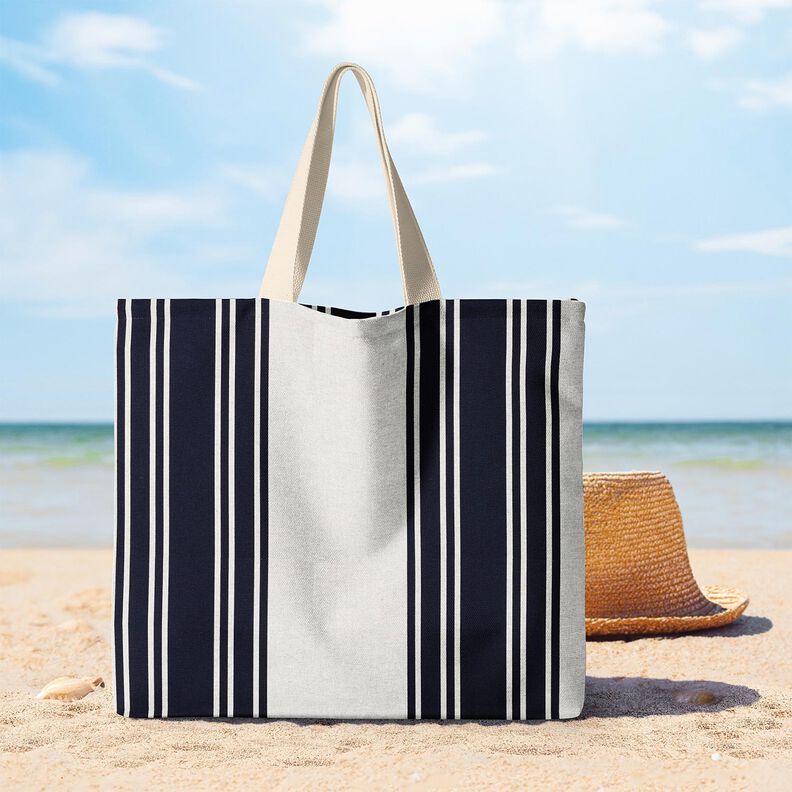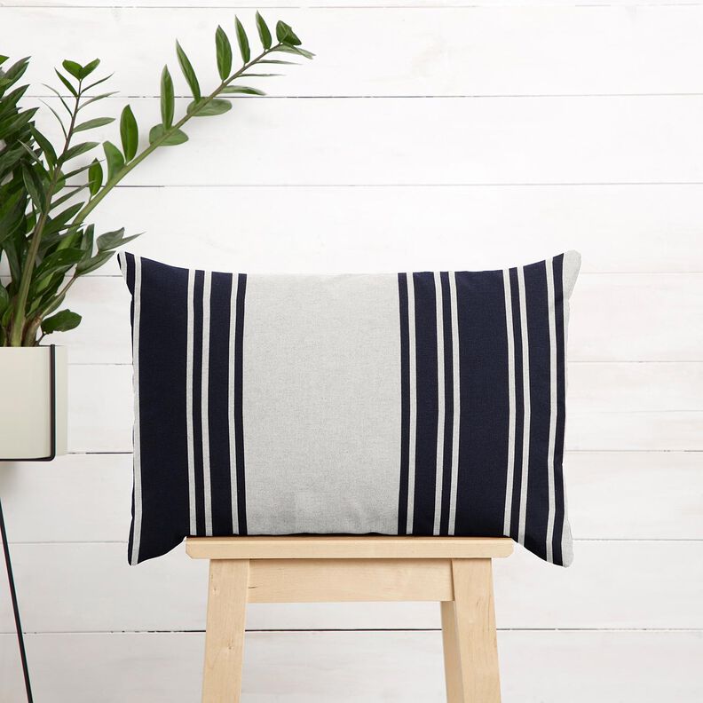 Tela decorativa Panama Bloques de rayas – azul negro/gris brumoso