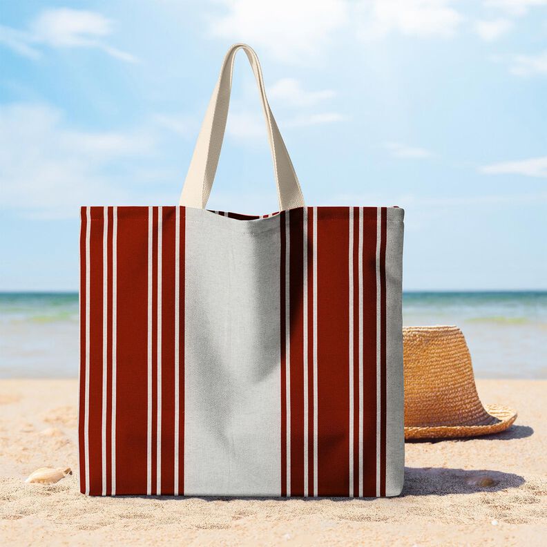 Tela decorativa Panama Bloques de rayas – carmín/gris brumoso