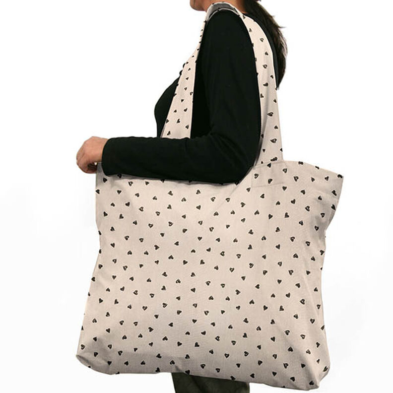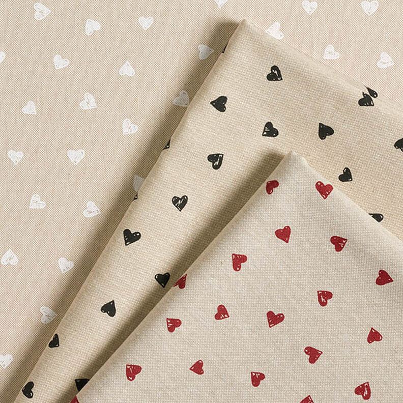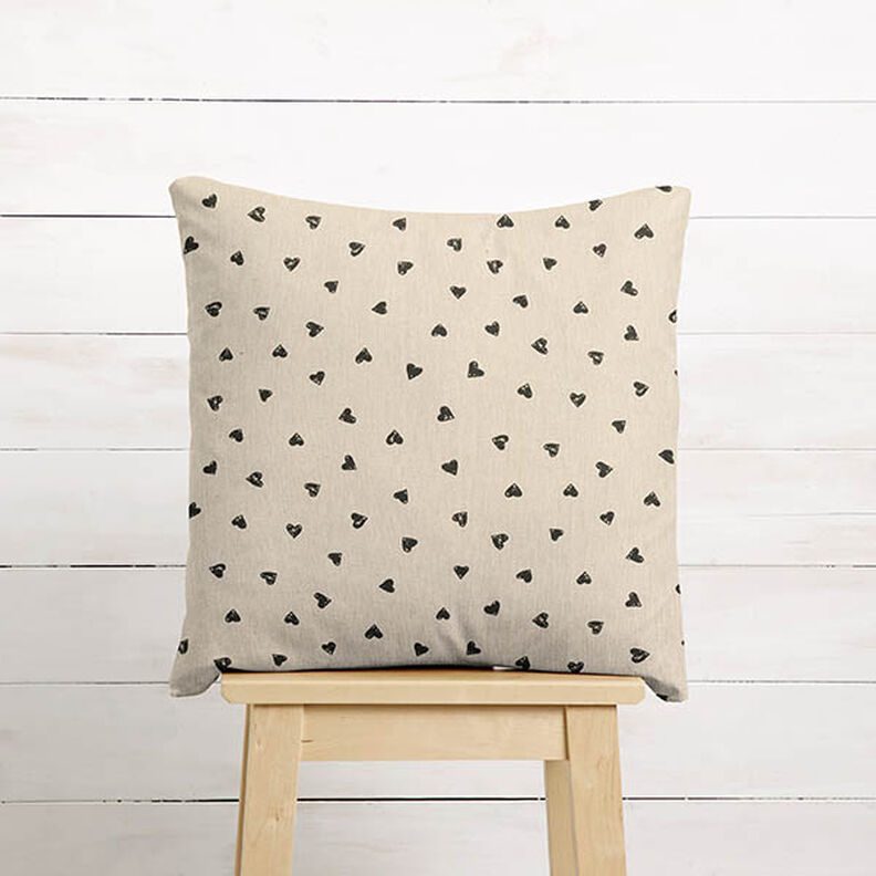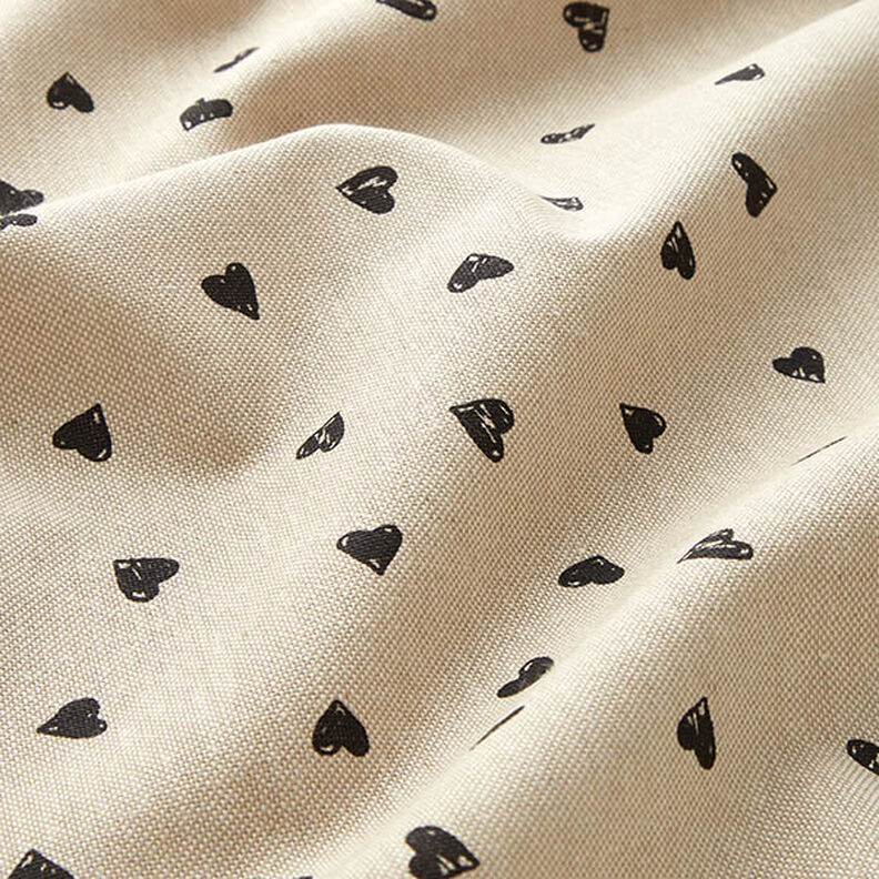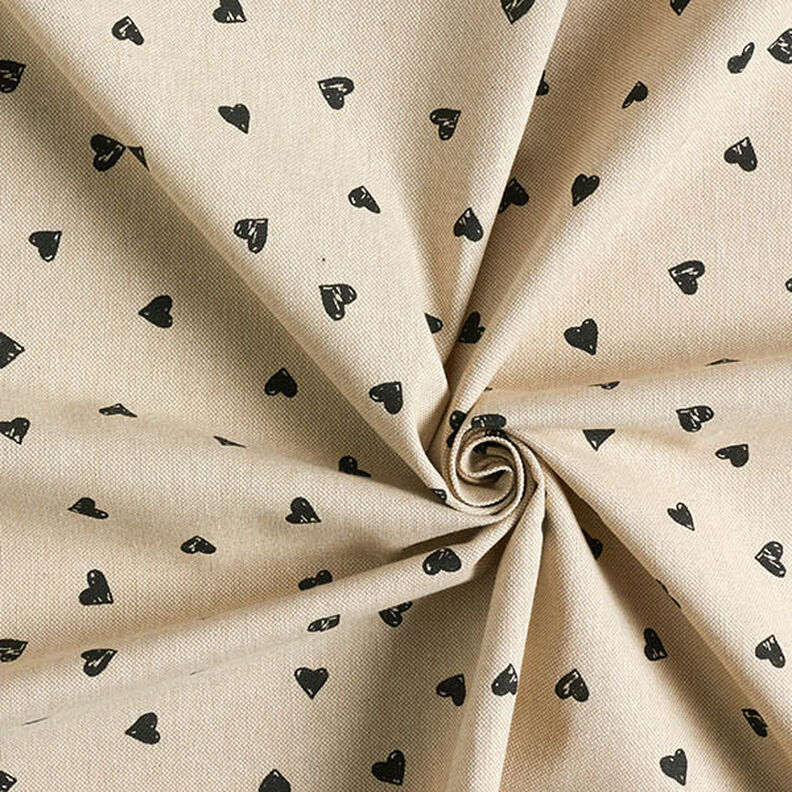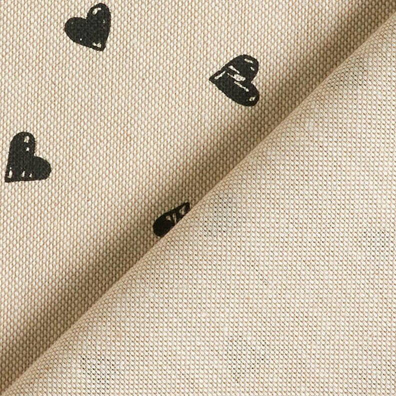 Tela decorativa Panama media Corazones – negro/naturaleza