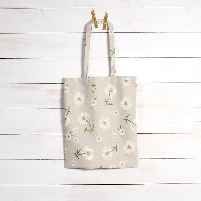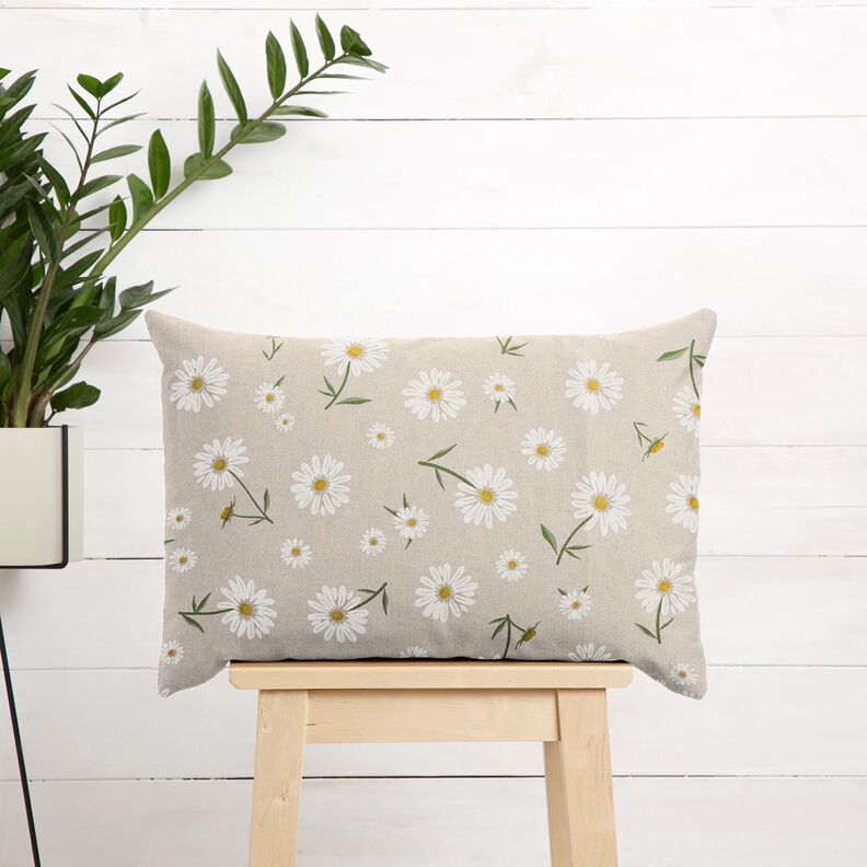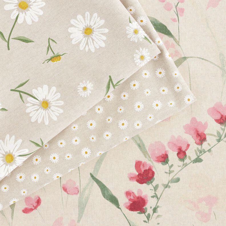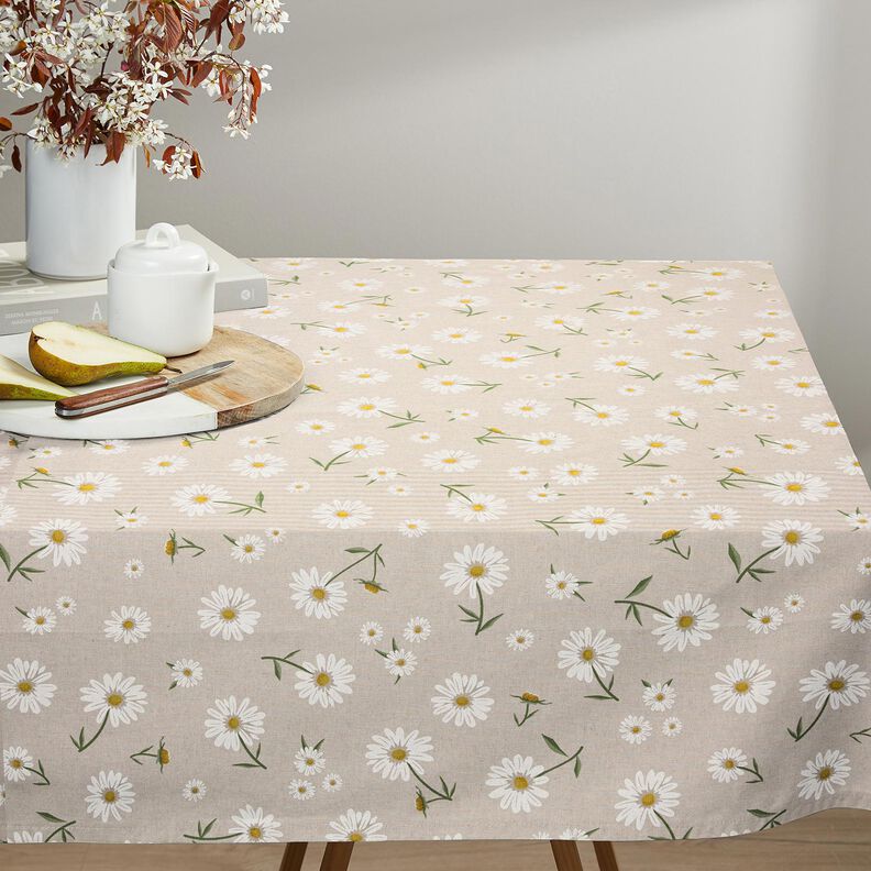 Tela decorativa Panama media Margaritas dispersas – naturaleza/blanco