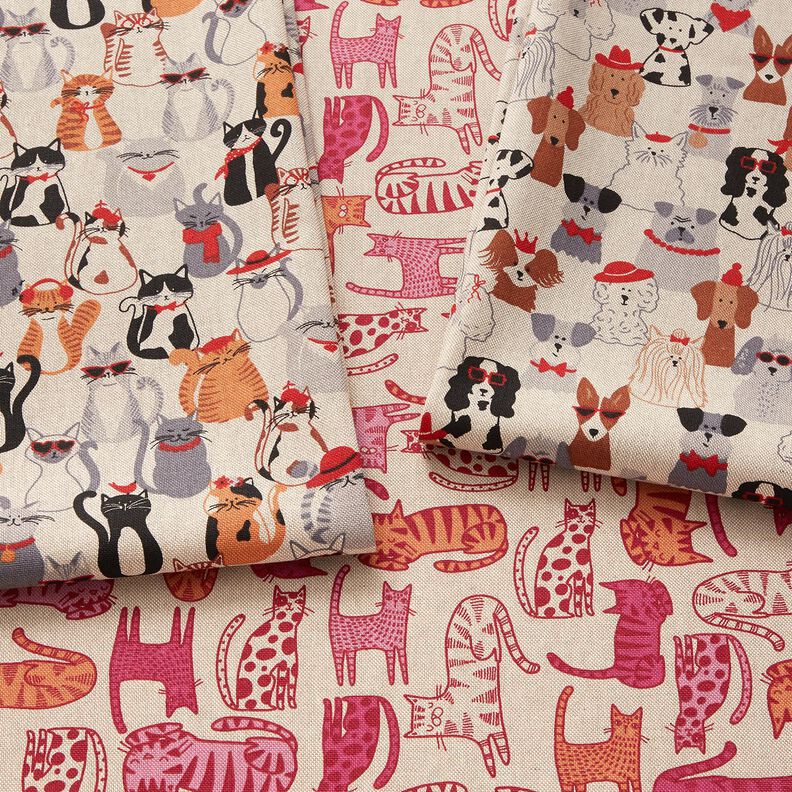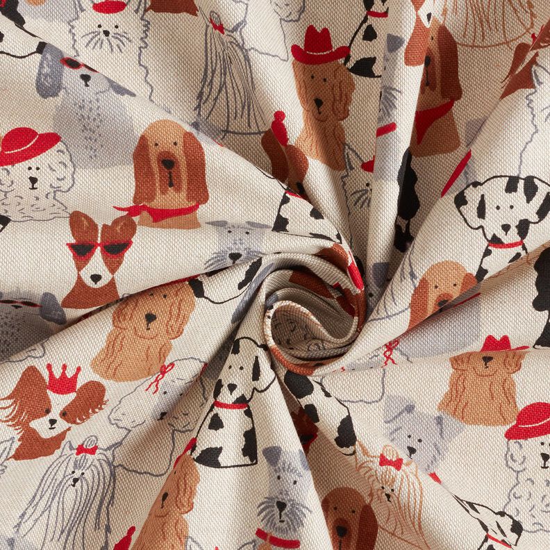 Tela decorativa Panama media perros elegantes – naturaleza/gris