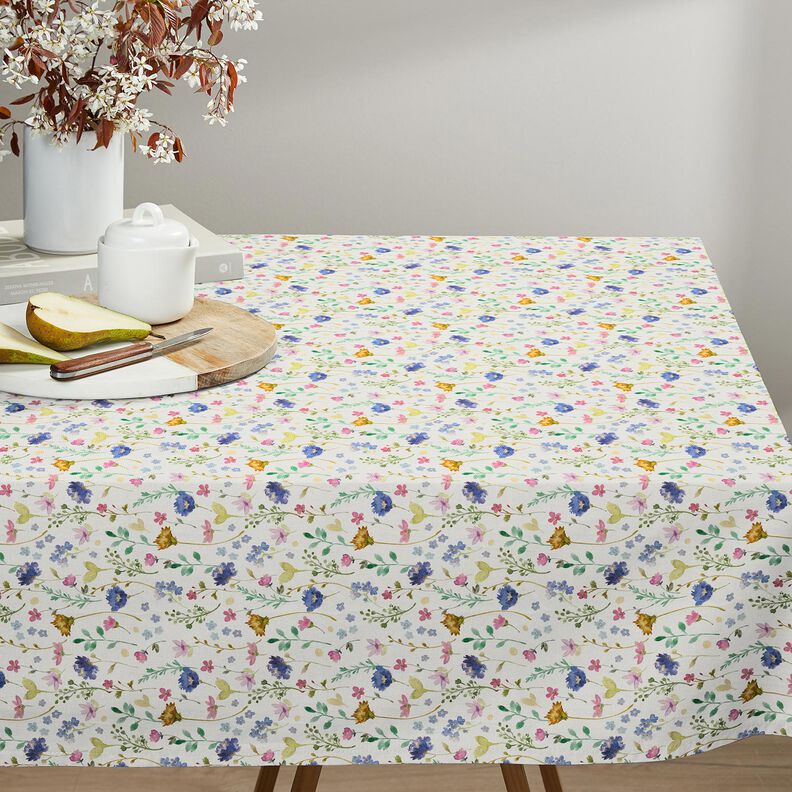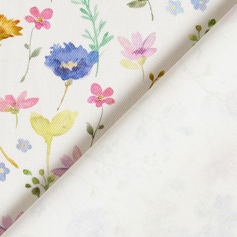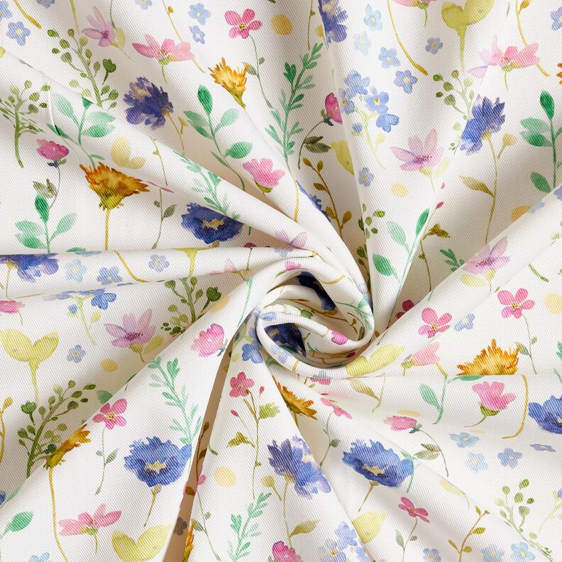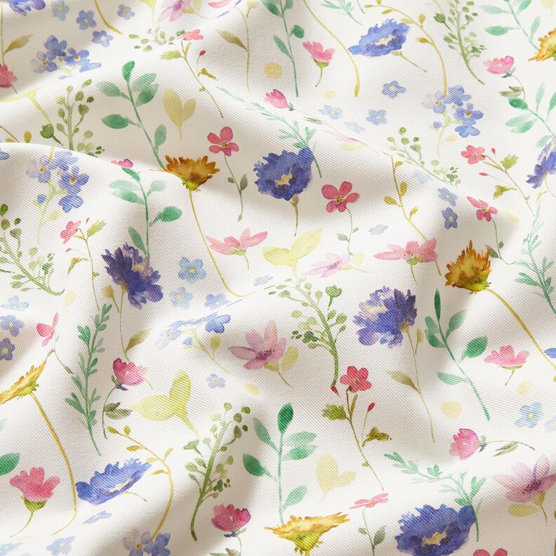 Tela decorativa Sarga de algodón Flores silvestres – marfil/azul lila