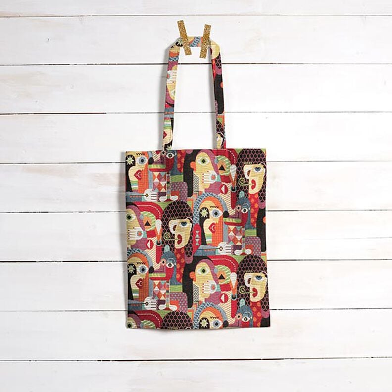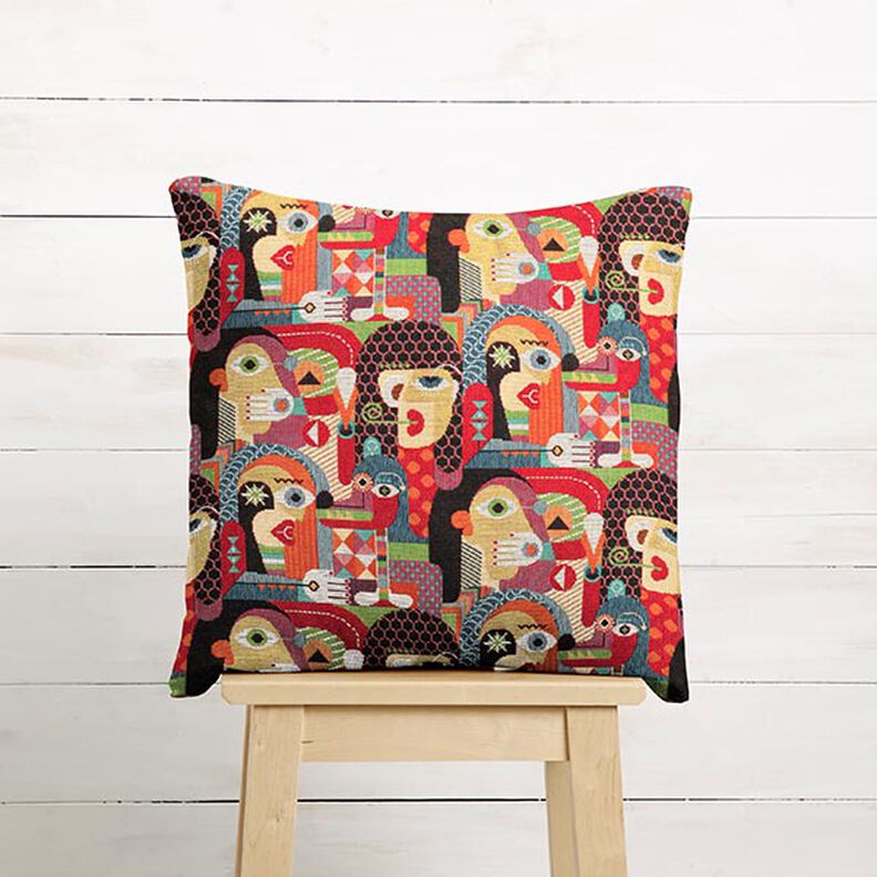 Tela decorativa tapiz con caras abstractas – negro