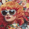 Tela decorativa Tapiz Mujeres famosas – carmín/beige claro