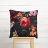 Terciopelo decorativo Flores románticas – antracito/rosado