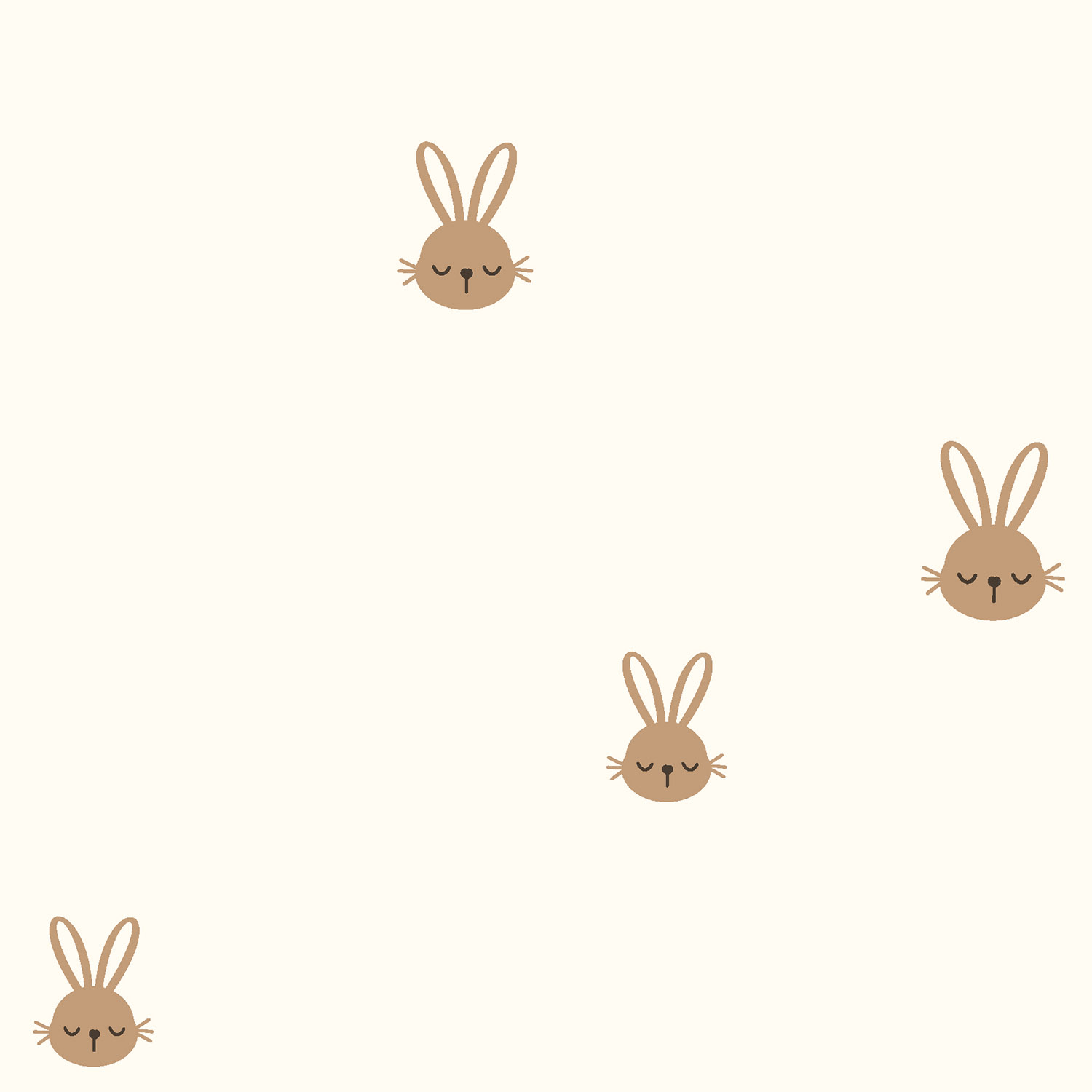 Suave, juguetón y simplemente adorable: Sobre el suave fondo offwhite se despliegan lindas caritas de conejitos con finos detalles dibujados. Los colores discretos y el diseño minimalista resultan modernos y a la vez maravillosamente infantiles – perfecto para quienes prefieren lo dulce pero no demasiado colorido.