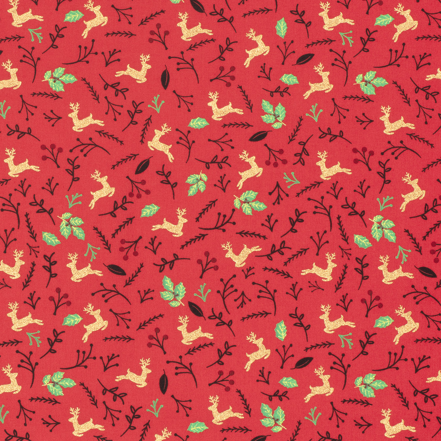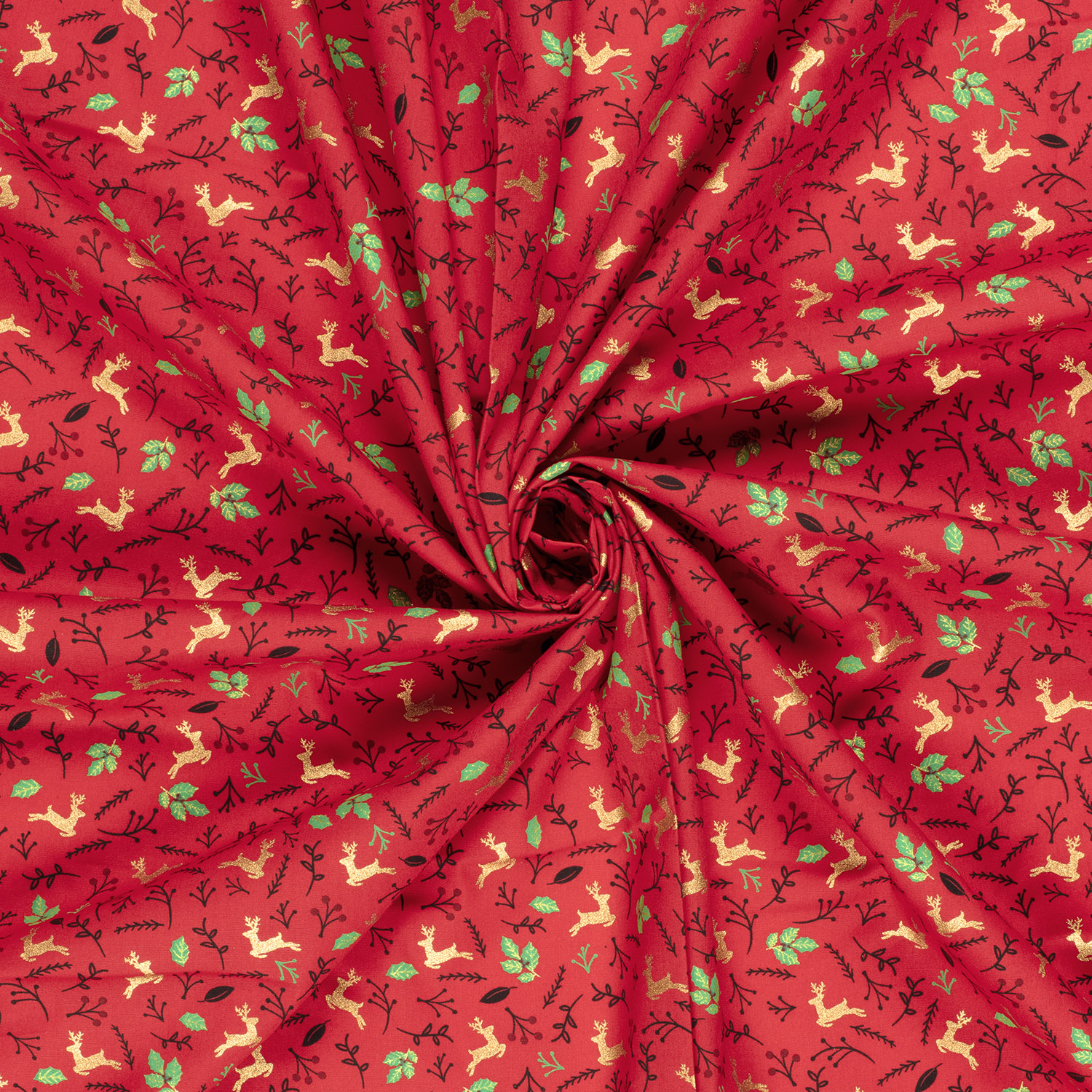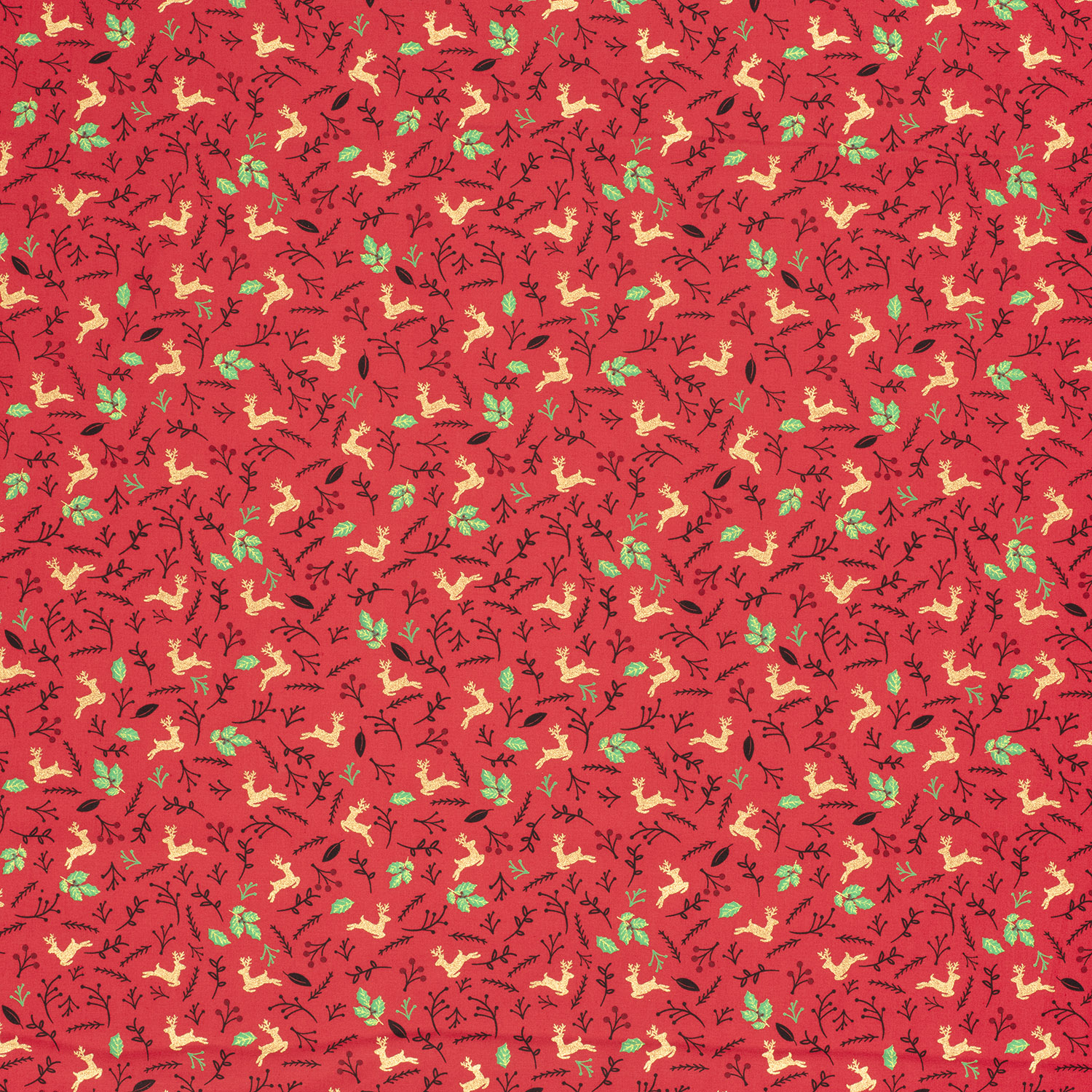 Un tejido festivo para la época más acogedora del año: elegantes ciervos, delicadas hojas y finas ramas de bayas retozan sobre un cálido fondo rojo. Los sutiles toques dorados dan al diseño un sofisticado brillo y confieren al tejido un aspecto especialmente navideño.