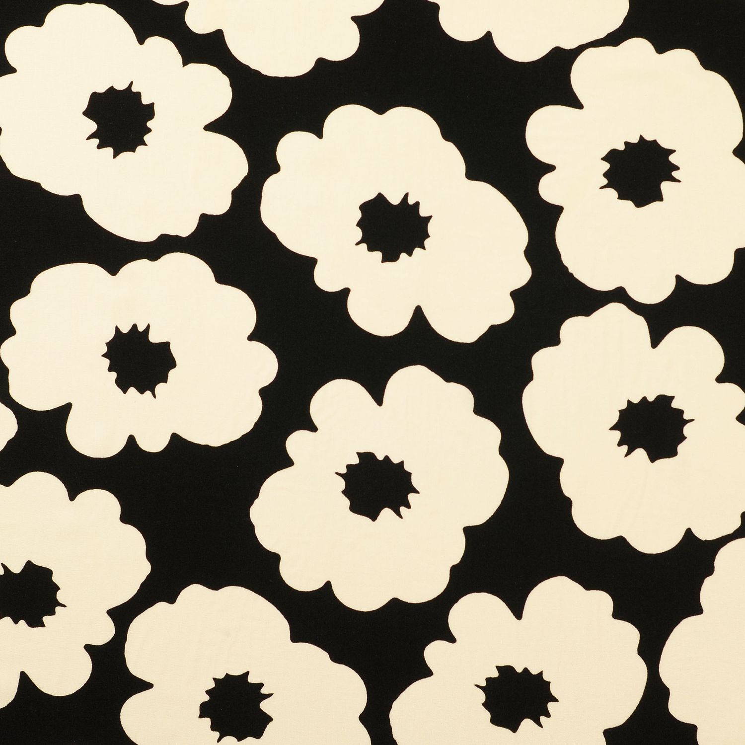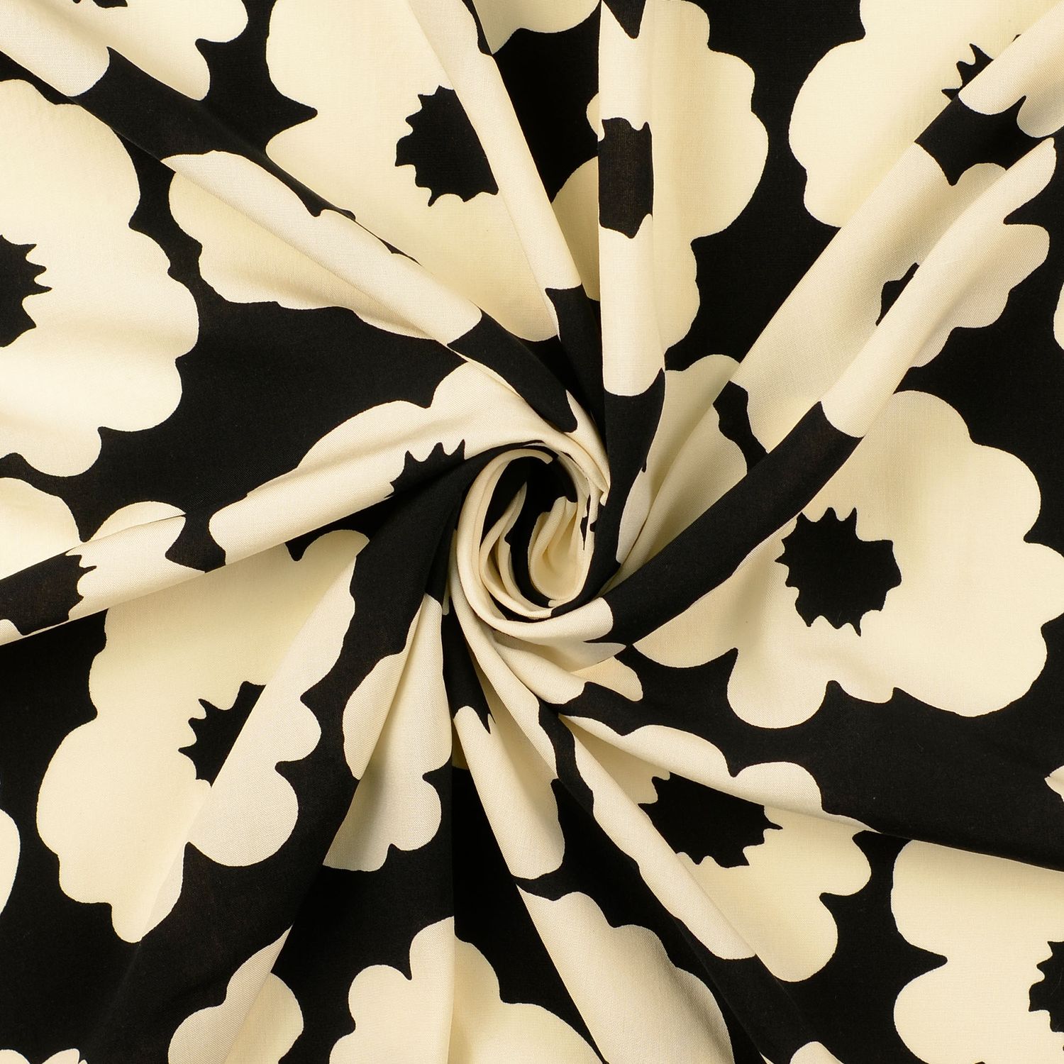 Popelín de viscosa - Flores negro ecru