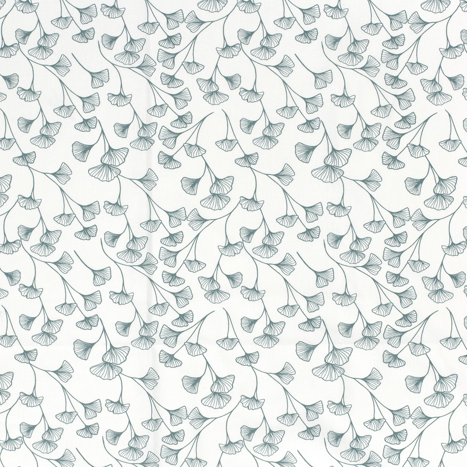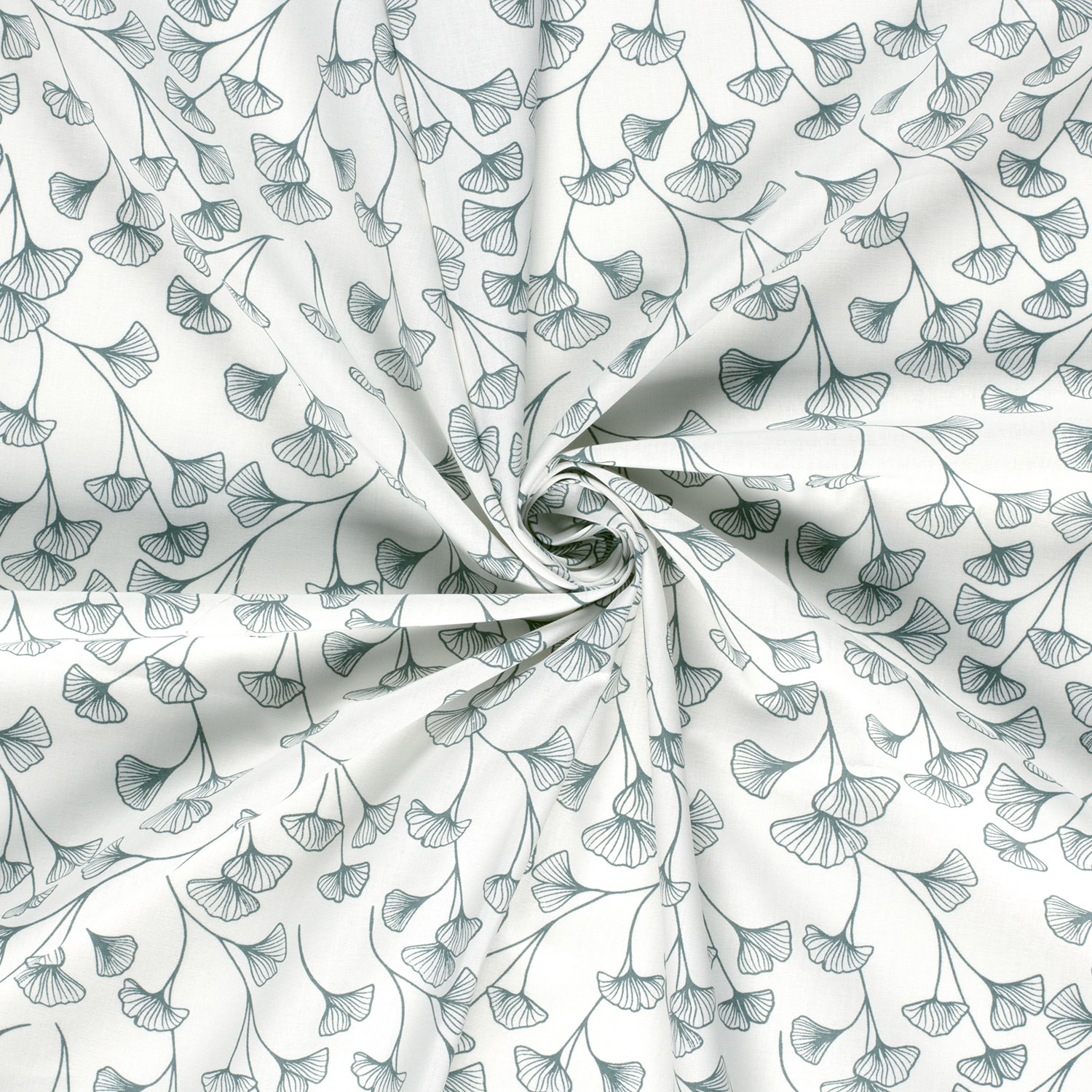Popelina de algodón – Hojas de ginkgo blanco verde oscuro